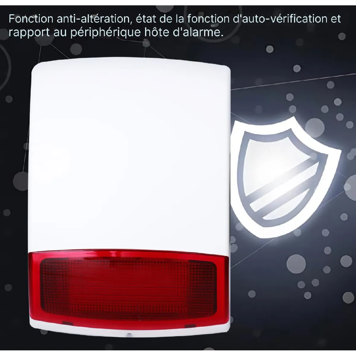 Sirène externe 100dB - Stroboscope clignotant - Compatible alarme port filaire