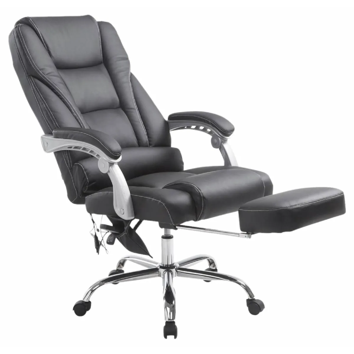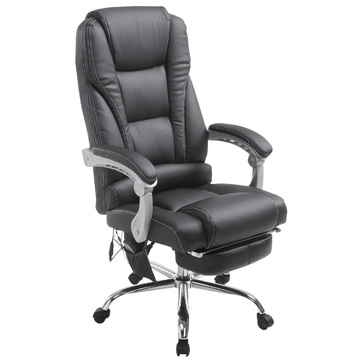 Le confort quotidien gagne en précision grâce à une fonction de massage à 7 points avec deux intensités, idéale pour les longues sessions au bureau. L'assise réglable en hauteur et la rotation à 360 degrés pour un positionnement flexible permettent d'ajuster la posture selon l'activité. Le dossier inclinable, verrouillable en plusieurs positions, s'accompagne d'un rembourrage épais en similicuir polyuréthane pour un maintien homogène. Une minuterie 15/30/60 min et des modes de vibration dédiés optimisent les pauses. La structure métallique à l'aspect chromé supporte jusqu'à 150 kg, tandis que le repose-pieds intégré pour soulager les jambes favorise la détente sans quitter le poste de travail.