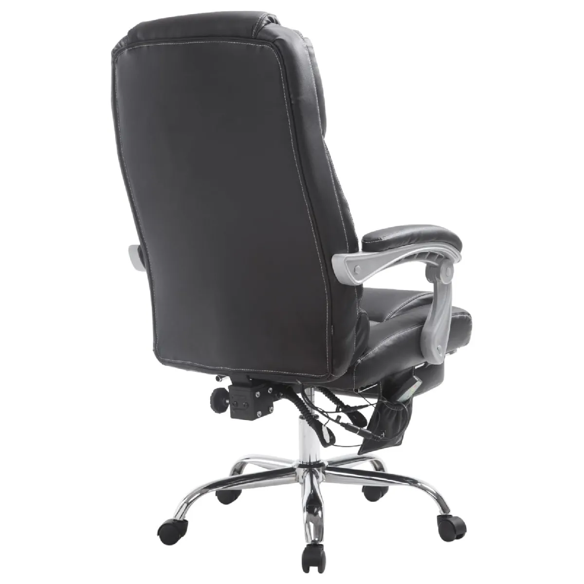 Le revêtement en similicuir 100 % polyuréthane facile d'entretien recouvre un rembourrage généreux pour un confort constant. La structure métallique robuste, au visuel chromé, assure une stabilité fiable jusqu'à 150 kg. Les dimensions étudiées soutiennent l'ergonomie : hauteur 118 à 127 cm, largeur 68 cm, profondeur 64 cm, assise 55 x 50 cm, dossier 74 cm, hauteur d'assise 47 à 56 cm et accoudoirs 66 à 75 cm. Le câble de 188 cm et la prise 230 V facilitent l'installation près d'une prise.