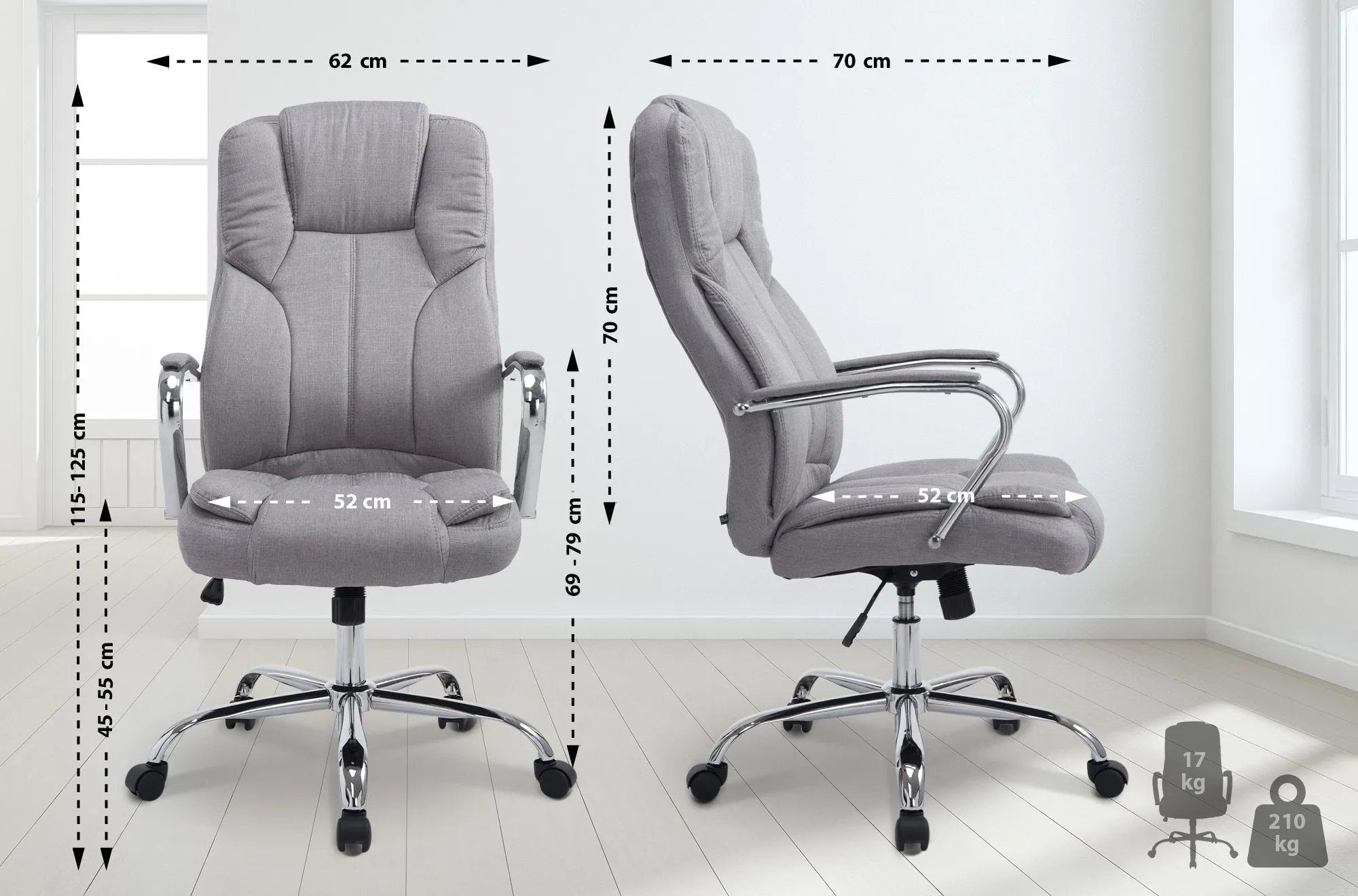 Fauteuil de bureau XXL en tissu résistant, réglable et stable