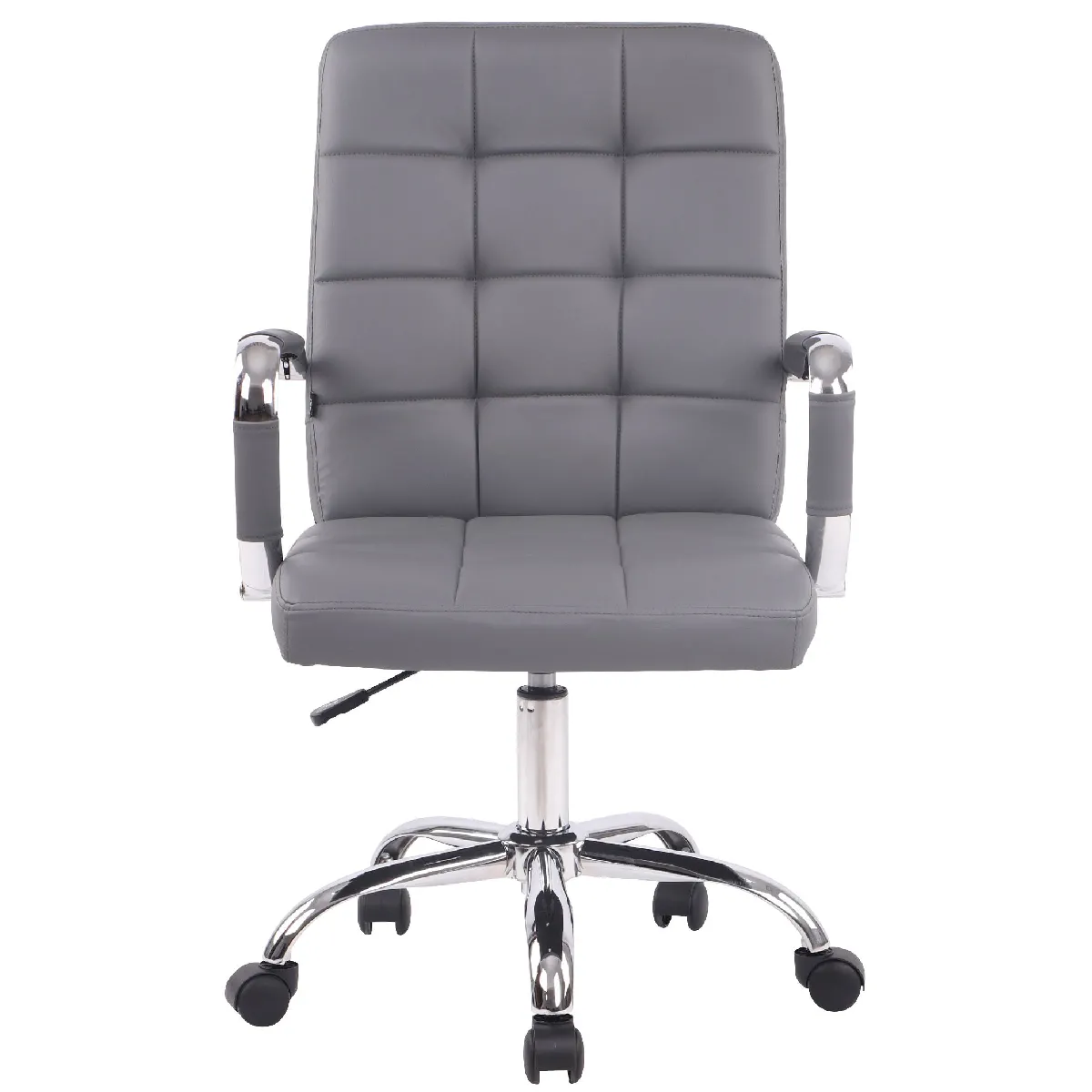 Chaise de bureau rembourrée en similicuir gris pivotante