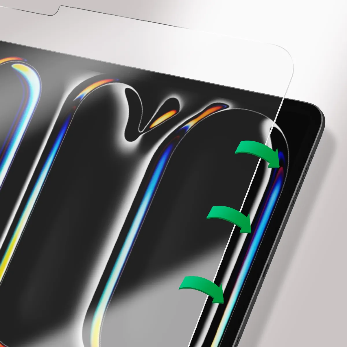 Film pour iPad Pro 13 2024, Second Glass 4smarts. En verre trempé 9H résistant aux chocs et rayures. Anti-traces. Fin et transparent conservant les propriétés de l'écran. Facile à installer. Compatible avec une coque.