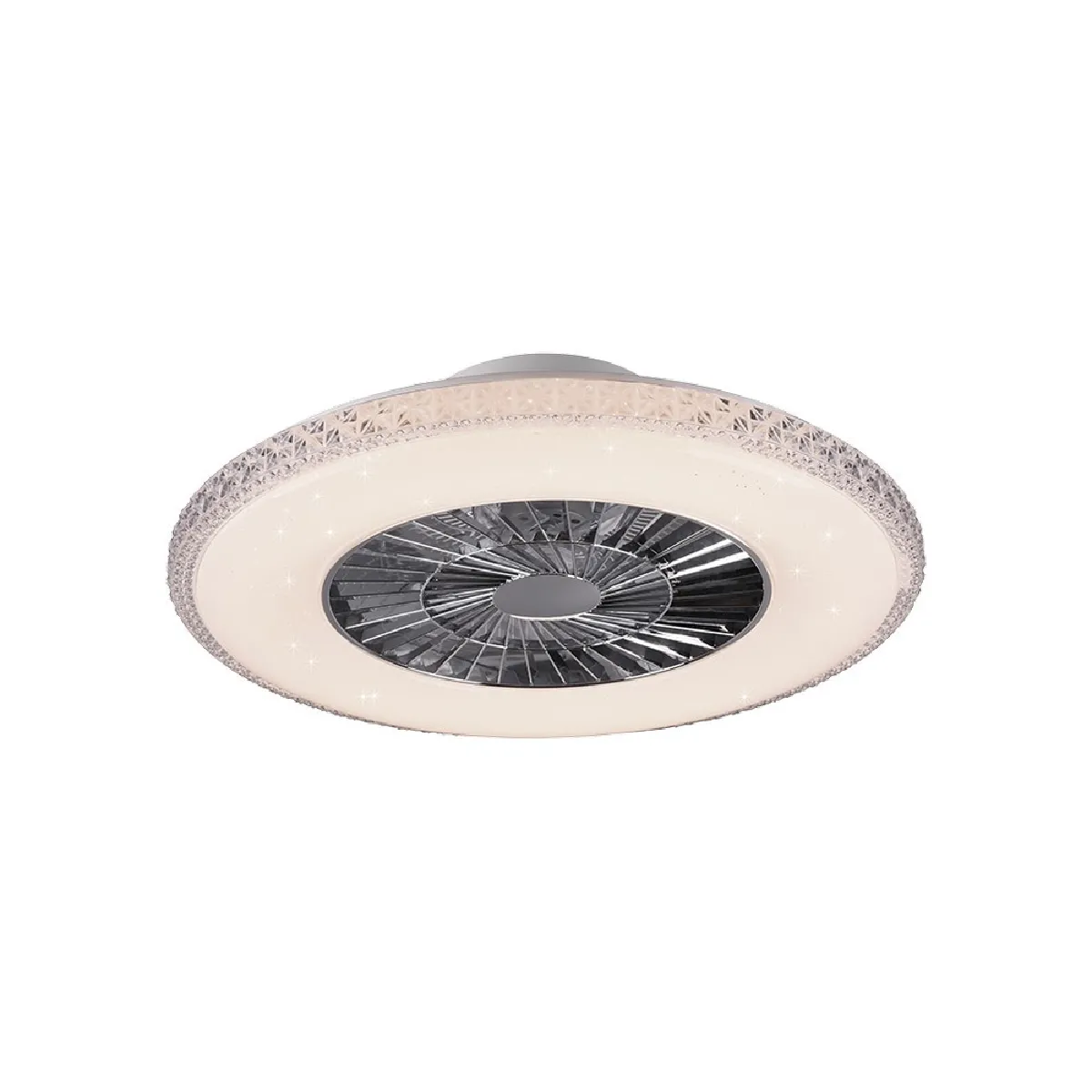 Reality Harstad Harstad Ventilateur de Plafond Moderne Chrome 3000-6500K Télécommande | Finition : Chromé | Matériau : plastique | Indice IP : IP20 | Hauteur : 19 cm | Diamètre : 60 cm | Type de lampe : LED intégrée | Nombre de lampes : 1 | Intensité variable : variateur intégré | Kelvins : 3 000 à 6 500 K | Lumens : 3900lm | Poids : 3,53 kg | Puissance (maximale) : 39,6 W | Commuté : commutable séparément