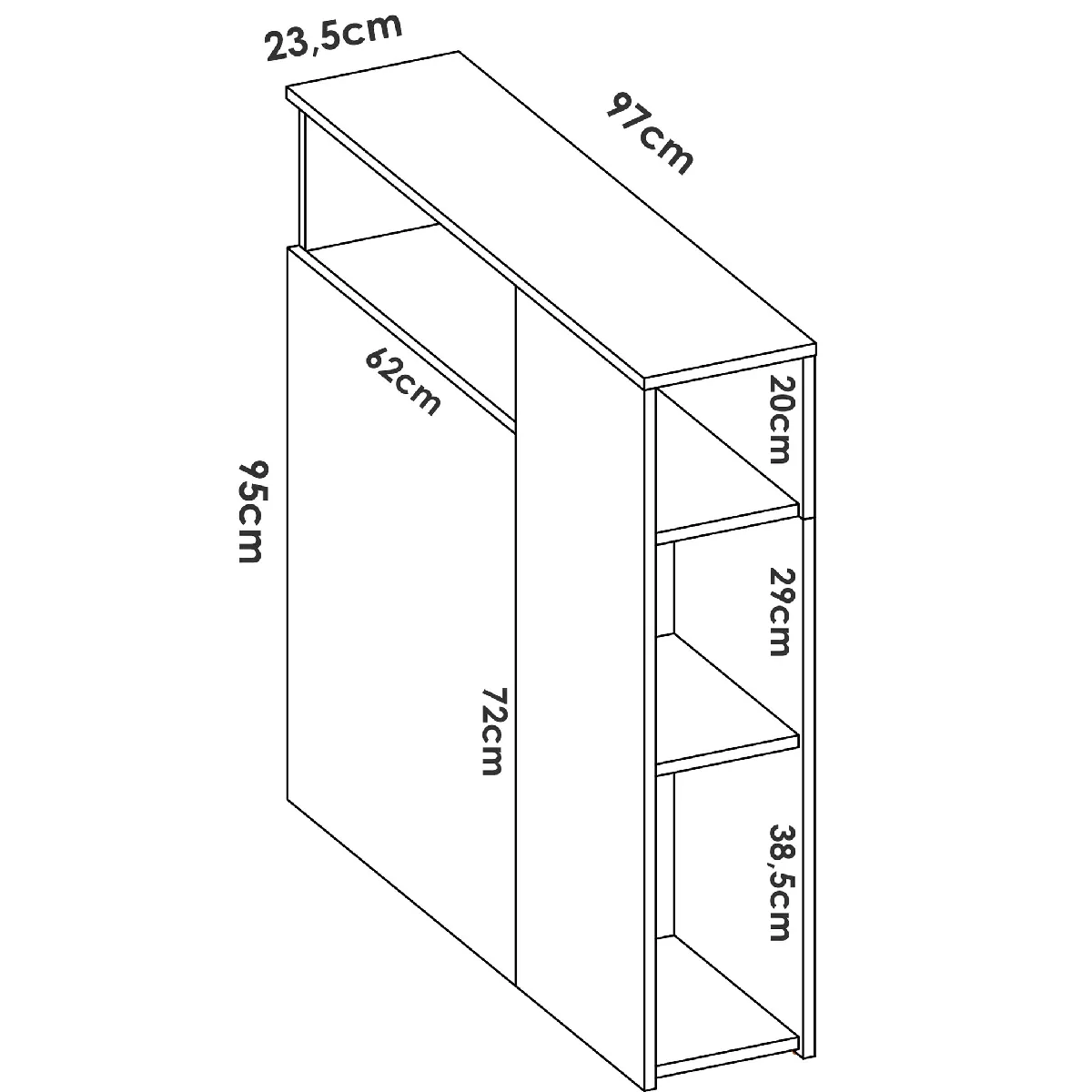 - Dimensions : 97 x 23,5 x 95 cm pour un encombrement maîtrisé derrière le couchage