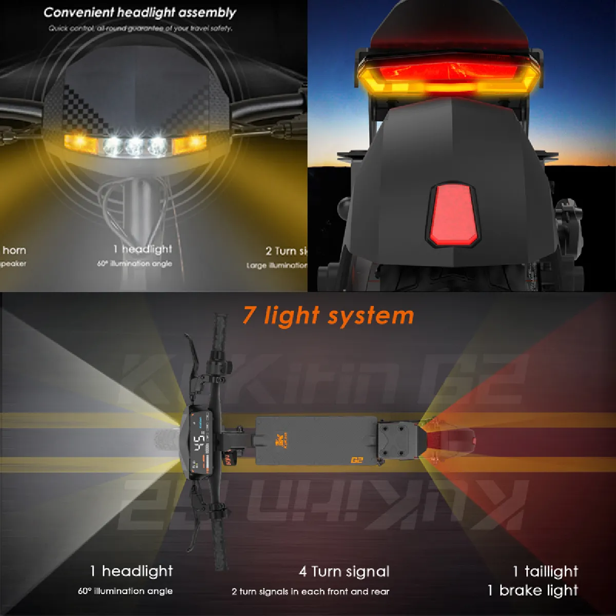 Phares complets comprenant 1 phare, 4 clignotants, 2 feux stop et 1 feu arrière pour une sécurité et un style accrus pendant les sorties de nuit