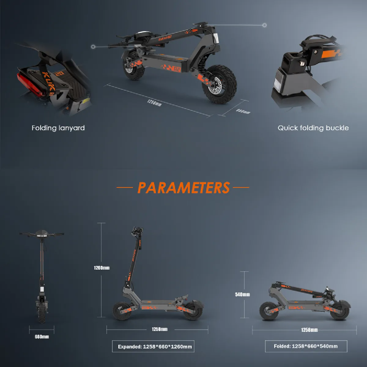 Moteur sans balais KuKirin G2 800W, écran tactile : alimenté par une batterie lithium-ion 48 V 15 Ah de qualité supérieure, fournissant une sortie de courant continue à haut débit et offrant une autonomie allant jusqu'à 55 km sur une seule charge à des vitesses modérées.