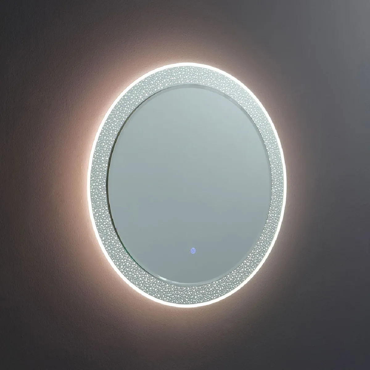 Miroir lumineux rond 80 cm avec décor satiné et capteur tactile