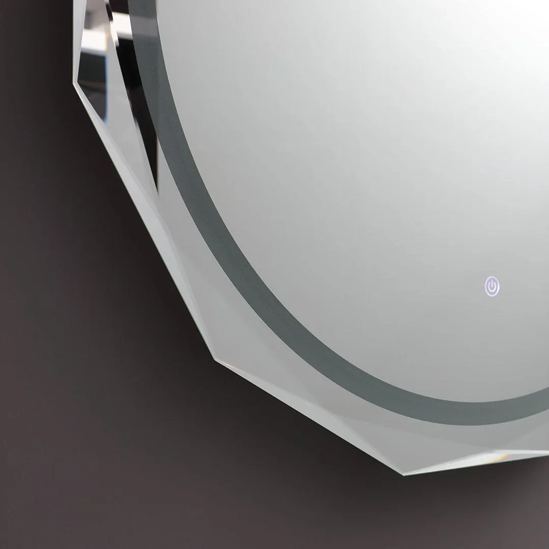 Le bandeau satiné sur le pourtour diffuse une lumière périphérique régulière pour un confort visuel, tandis que le bord à facettes ajoute une signature esthétique discrète et contemporaine. Le système d'alimentation électrique active les LED via un capteur tactile accessible en façade, ce qui simplifie l'usage au quotidien. L'ensemble s'adapte à la salle de bain comme à d'autres pièces où un miroir rond à l'allure moderne est souhaité.