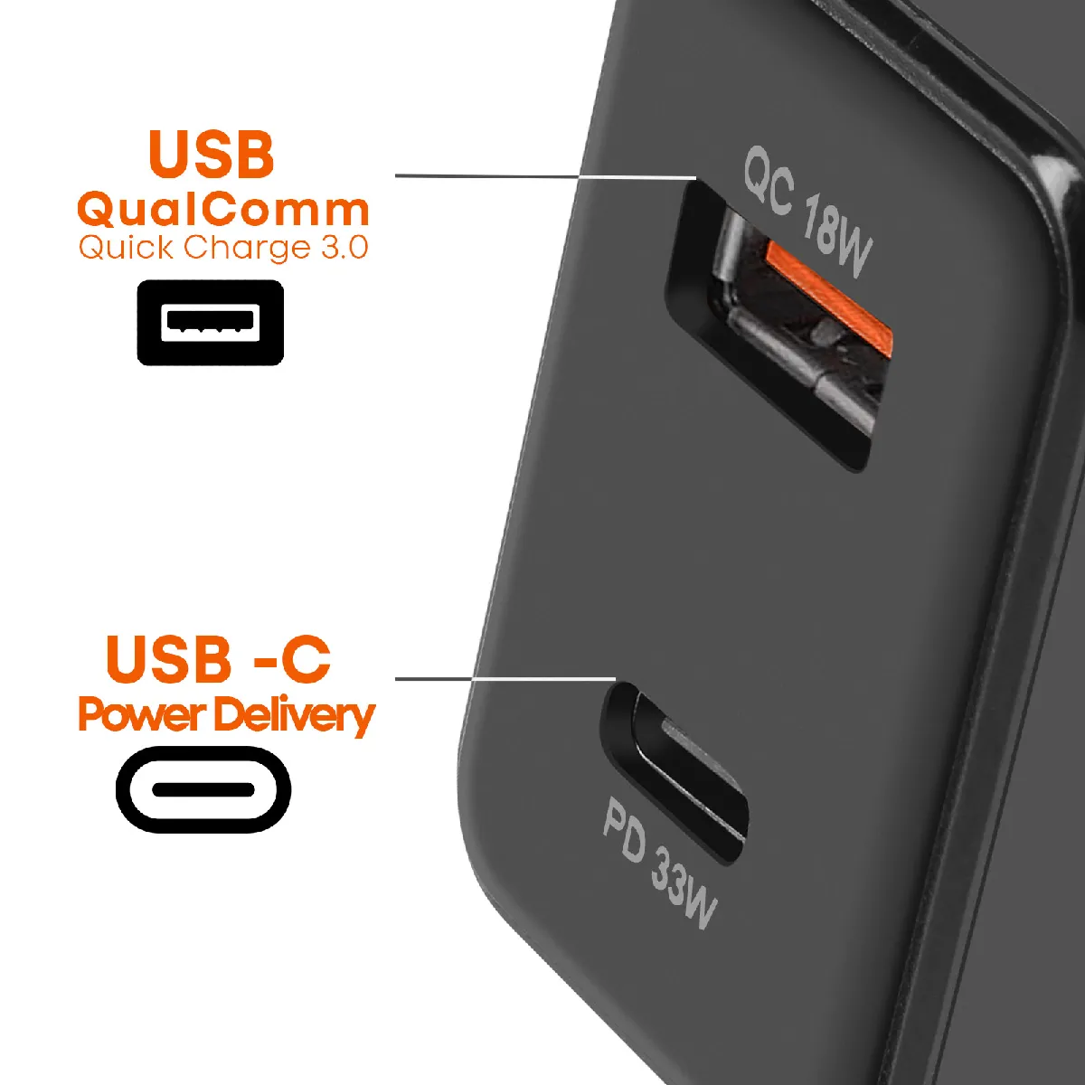 LinQ Chargeur Secteur USB-C 33W + USB 18W Charge Rapide Design Compact Noir