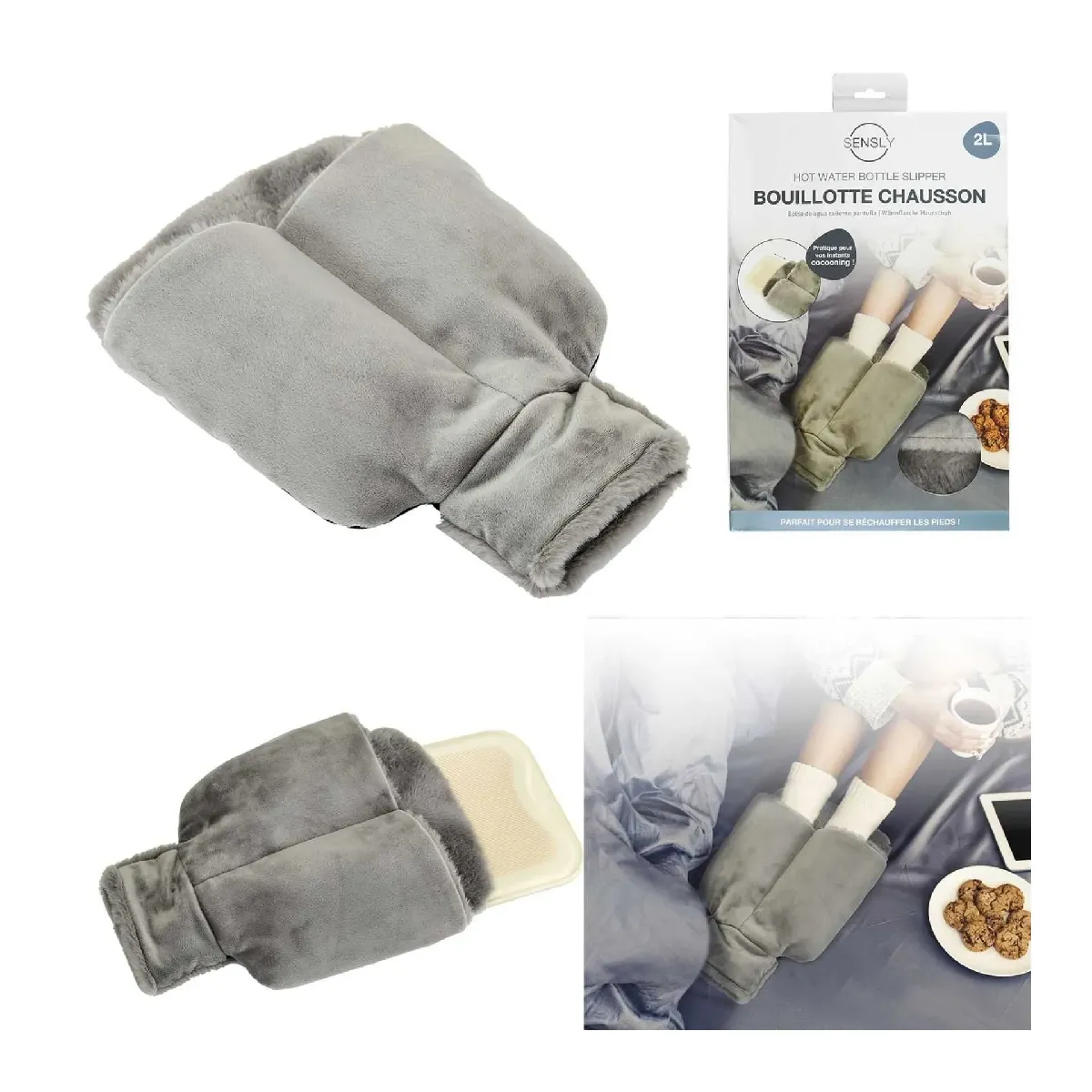 Bouillotte chausson 2L - PVC et polyester - Gris