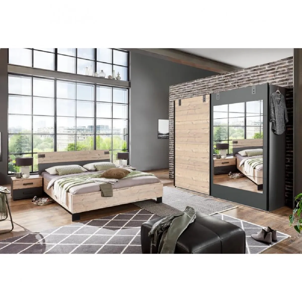 Chambre complète Vernon en pin et graphite, ligne moderne et fonctionnelle