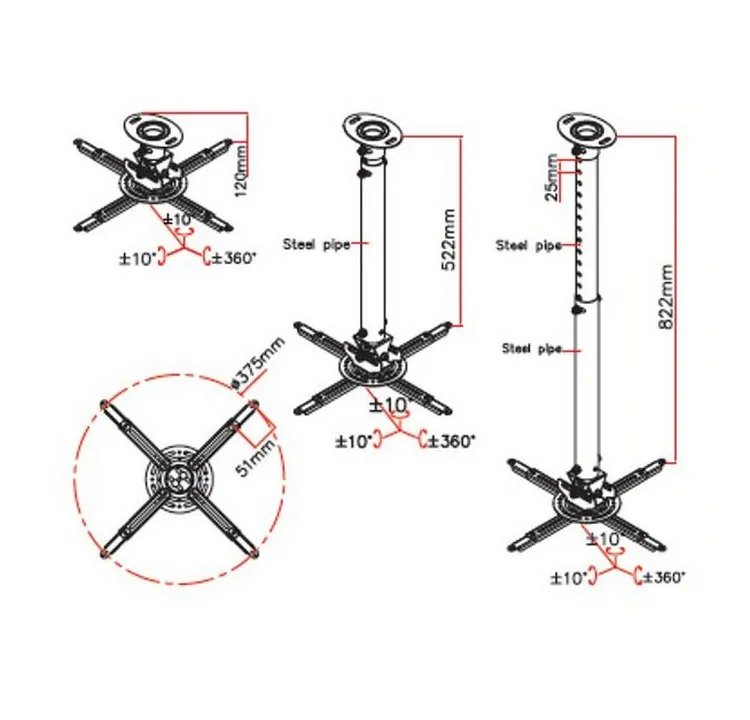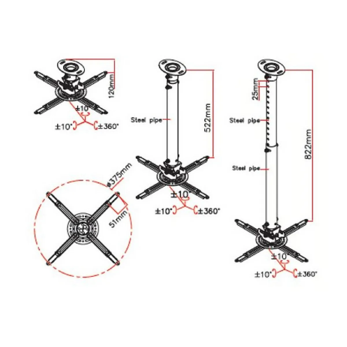 Support plafond universel pour vidéoprojecteur en acier, orientation 360°