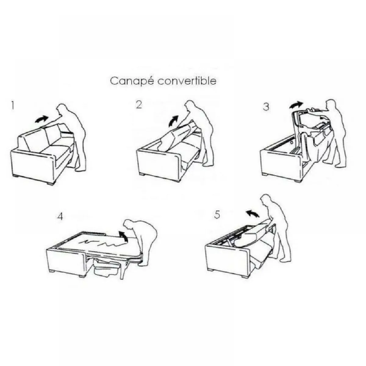 AUCUN COUSSIN A RETIRER, l'ouverture du lit 120 * 192cm se fait en quelques secondes sans enlever les coussins d'assise et de dossier.