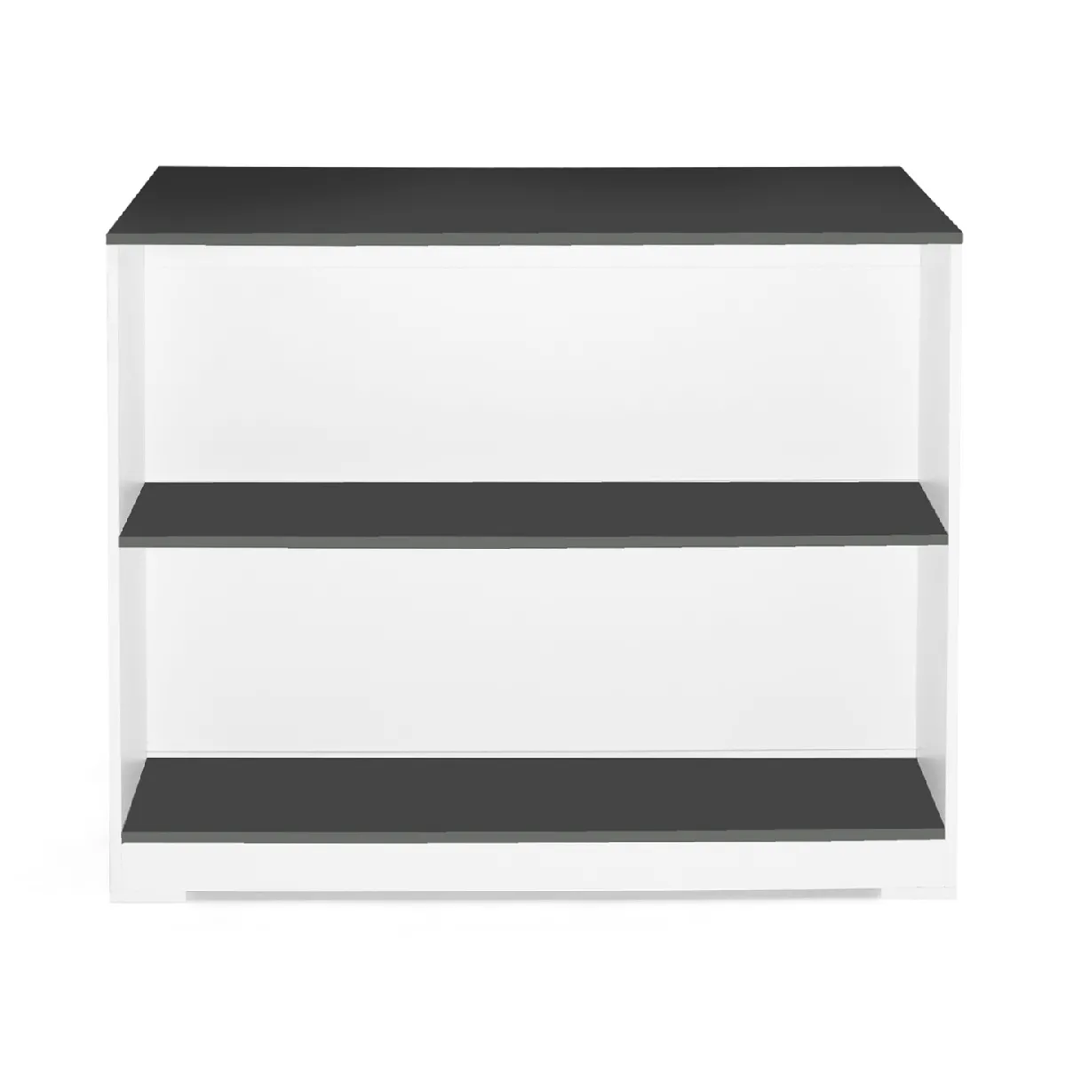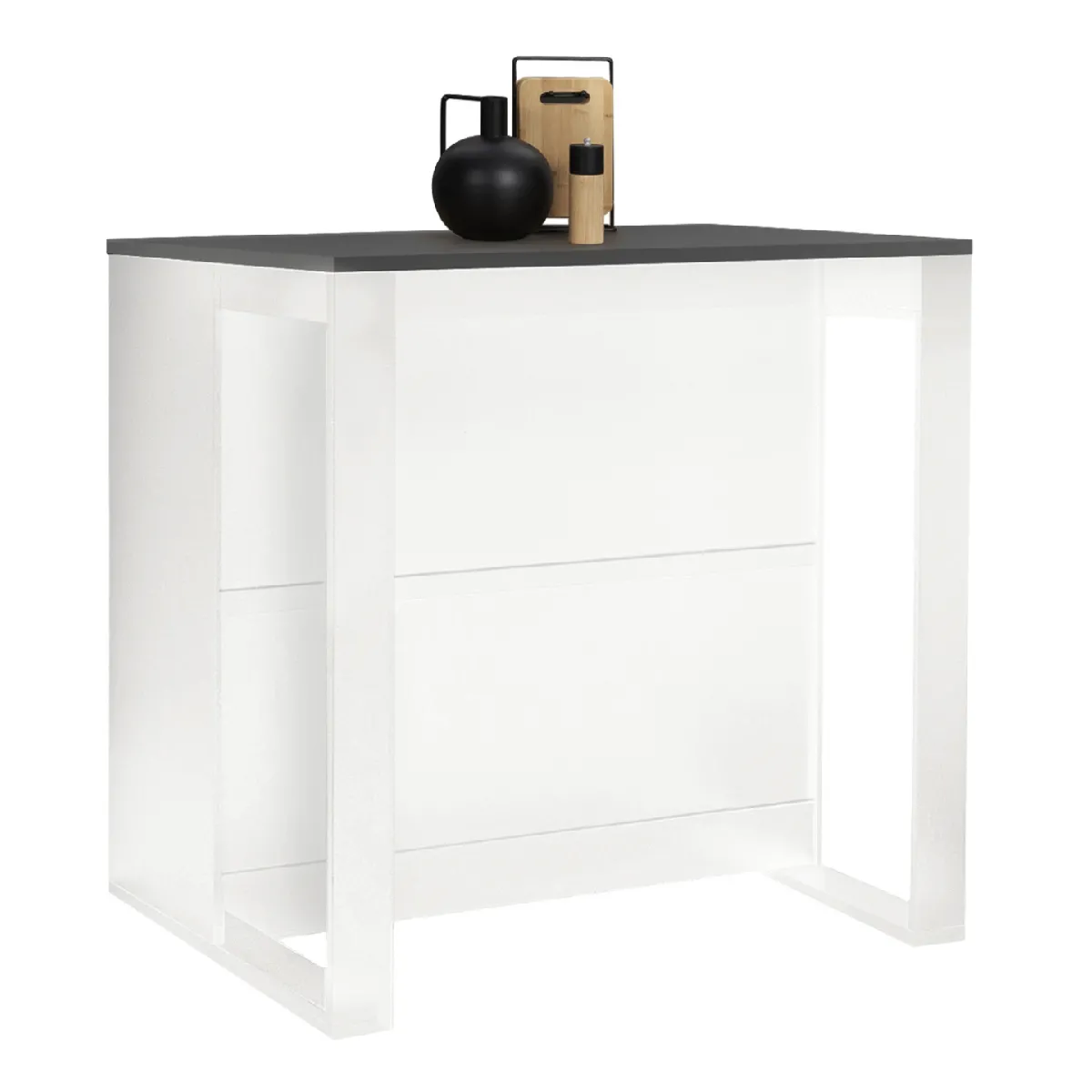 Table de bar îlot - Compacte - 2 étagères de rangement - Bois blanc - Plateau gris
