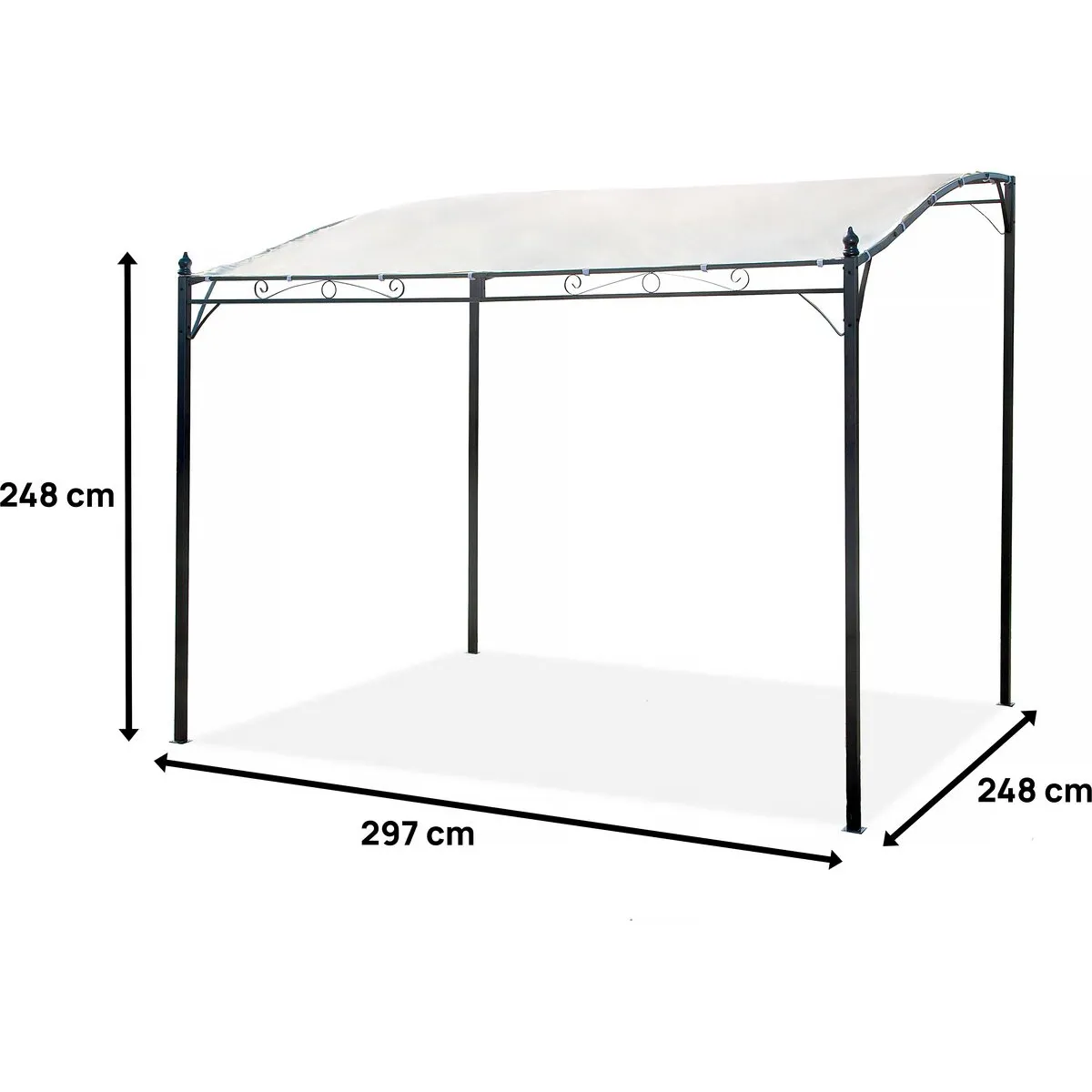 Pergola incliné en métal - 3 x 2,5 m : Apportez confort et élégance à votre espace extérieur avec notre pergola inclinée. Avec ses dimensions généreuses 2,97 x 2,48 x 2,48 m, elle offre un espace spacieux pour vos repas, vos moments de détente ou vos événements en plein air. Son design moderne et fonctionnel s'intègre parfaitement dans tout type de jardin ou terrasse.La tonnelle est dotée d'une toile beige traitée, offrant une excellente résistance aux UV, tandis que son toit incliné permet un écoulement optimal de l'eau, évitant ainsi toute accumulation et garantissant un espace toujours sec et agréable. Sa structure en métal, de couleur anthracite, est spécialement conçue pour être anti-rouille, assurant ainsi une grande robustesse et stabilité.Idéale pour créer un espace ombragé, cette tonnelle est à la fois pratique et esthétique, vous offrant un abri de qualité pour profiter de vos moments extérieurs, quels que soient les caprices de la météo !Tonnelle avec toit incliné - Dimension : 2.97 x 2.48 x 2.48 m - Traitement anti-uv et antirouille - Résistant à l'eau - Toile beige - Métal - Anthracite .Descriptif: Tonnelle avec toit incliné - Dimension : 2.97 x 2.48 x 2.48 m - Traitement anti-uv et antirouille - Résistant à l'eau - Toile beige - Métal - Anthracite