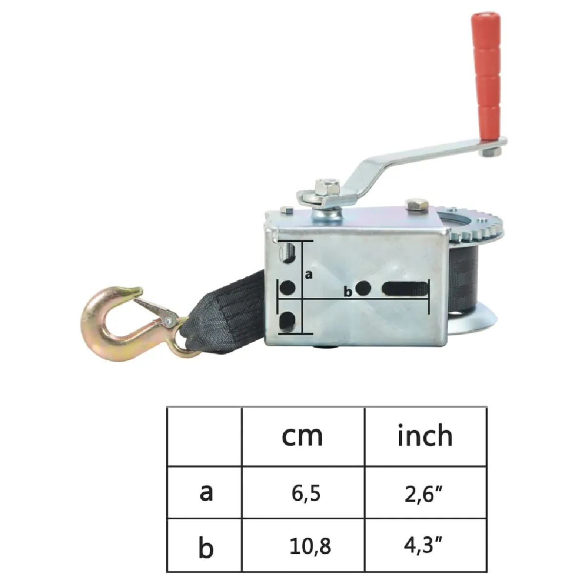 Ce treuil à main robuste, avec une sangle en toile légère mais haute résistance, est extrêmement robuste. Fabriquée en polyester, la sangle est résistante à la corrosion et aux intempéries et ne semmêle pas pendant la traction. De plus, la sangle en toile peut réduire les vibrations et réduire les frottements et les égratignures sur votre pare-chocs. Grâce au fer de qualité utilisé dans sa construction, le treuil manuel est très durable et servira une utilisation à long terme.