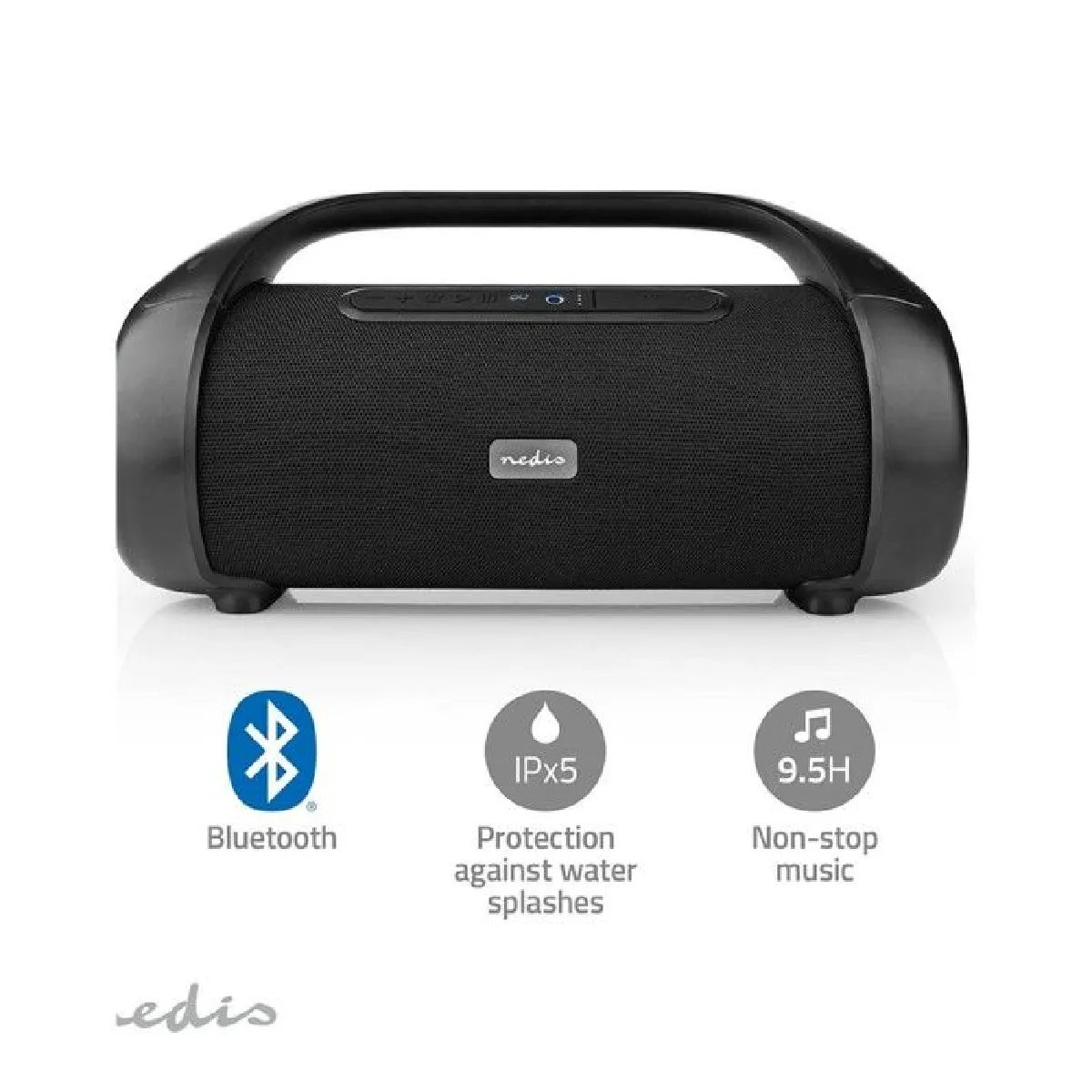 Pensée pour animer des écoutes en intérieur comme en extérieur, cette enceinte nomade offre une puissance de 120 W avec configuration 2,1 canaux. La connexion Bluetooth pour une lecture sans fil simple facilite l'appairage avec un smartphone ou une tablette. Son format robuste en ABS résistant aux usages nomades s'accompagne d'une autonomie annoncée de 9,5 heures, suffisante pour une longue session musicale. Le boîtier noir intègre des effets lumineux RGB intégrés pour accompagner la lecture. Avec une étanchéité IPX6 pour résister aux projections, elle convient aux ambiances dynamiques, tout en restant facile à transporter. Le boîtier 45,5 × 23,5 × 6 cm pèse 3,45 kg.