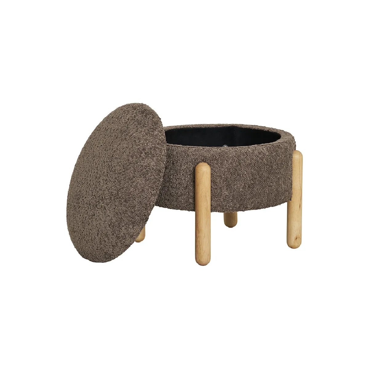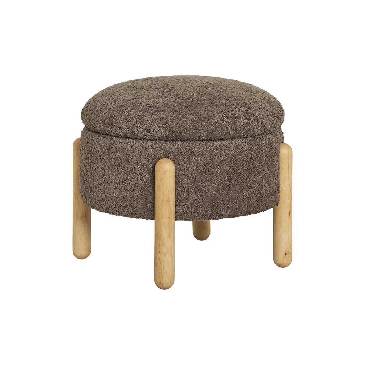 Idéal comme assise d'appoint ou repose-pieds, ce modèle apporte une touche chaleureuse et contemporaine à un salon tout en restant simple à intégrer. Sa forme arrondie et sa finition en tissu bouclette marron créent un relief doux au toucher, adapté aux espaces conviviaux. Avec 36 cm de hauteur et 45 cm de diamètre, il se déplace facilement grâce à un poids de 5 kg. La structure en contreplaqué assure la constance de la forme, tandis que l'ensemble reste discret pour optimiser un coin lecture ou compléter un canapé. Le coffre intégré permet de garder les petits objets à portée de main sans encombrer la pièce.