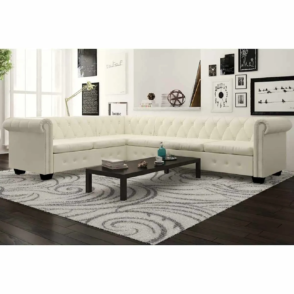 vidaXL Chesterfield - Canapé d'angle 6 places - Blanc