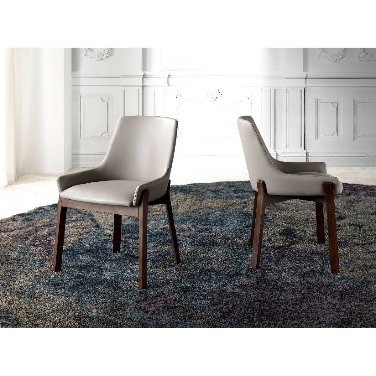 Chaise au design moderne dont l'assise et le dossier sont revêtus de similicuir vison foncé. Ses pieds en bois couleur noyer, au style avant-gardiste mais intemporel, en feront un élément incontournable de votre cuisine ou de votre salle à manger. Cette chaise d'Angel Cerdá allie le style unique et personnel de la marque au plus grand confort et à la stabilité, grâce à la haute qualité de son revêtement et à la structure originale de ses pieds.