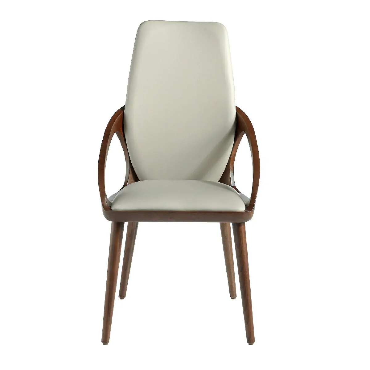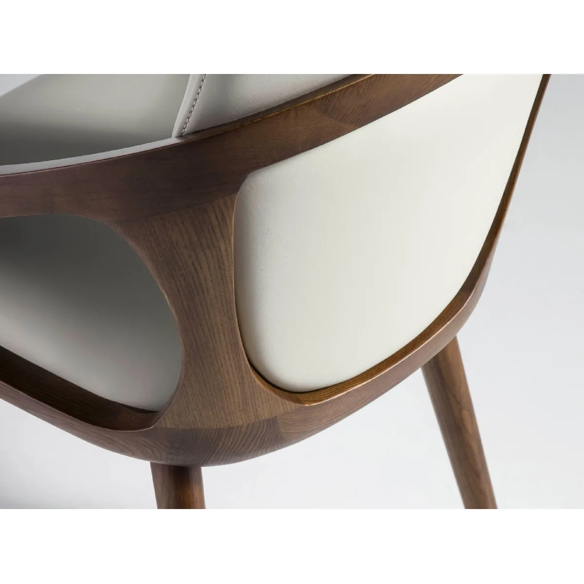 Chaise de table rembourrée - Simili cuir vison - Structure en bois de frêne noyer