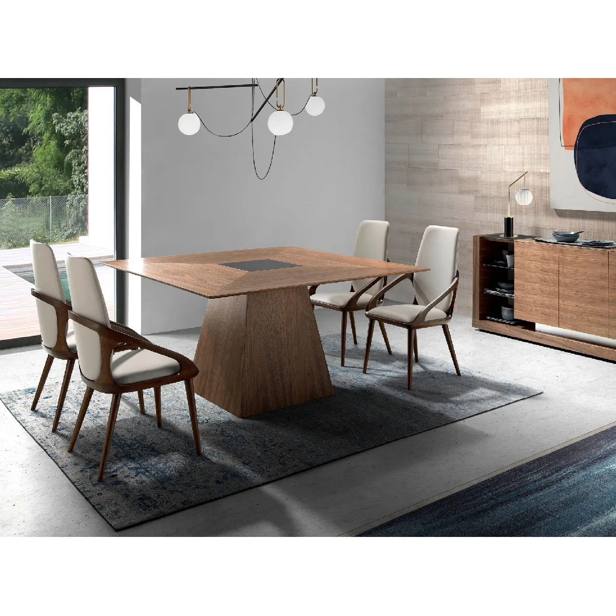 - Ses pieds robustes et linéaires permettent de l'associer à n'importe quelle table de salle à manger de notre catalogue.