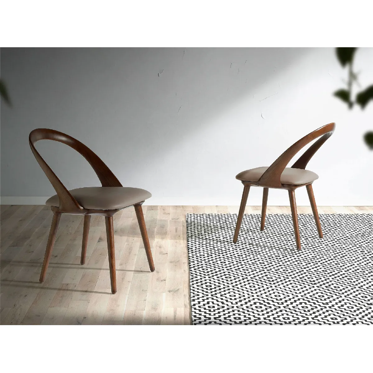 Chaise de table - Similicuir et noyer - Design moderne - Structure courbée