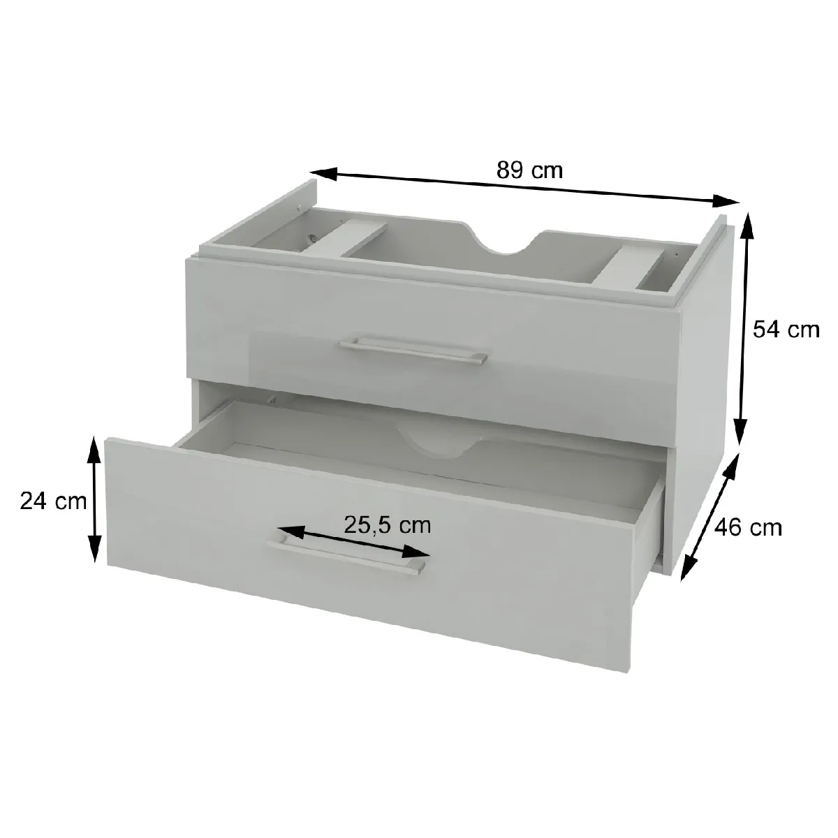 - Ce meuble bas ne convainc pas seulement par son design moderne, mais il offre aussi beaucoup d'espace de rangement utile pour le sèche-cheveux, la brosse à dents ou la serviette. Il ne prend pas beaucoup de place et possède en outre une découpe pour le siphon.
