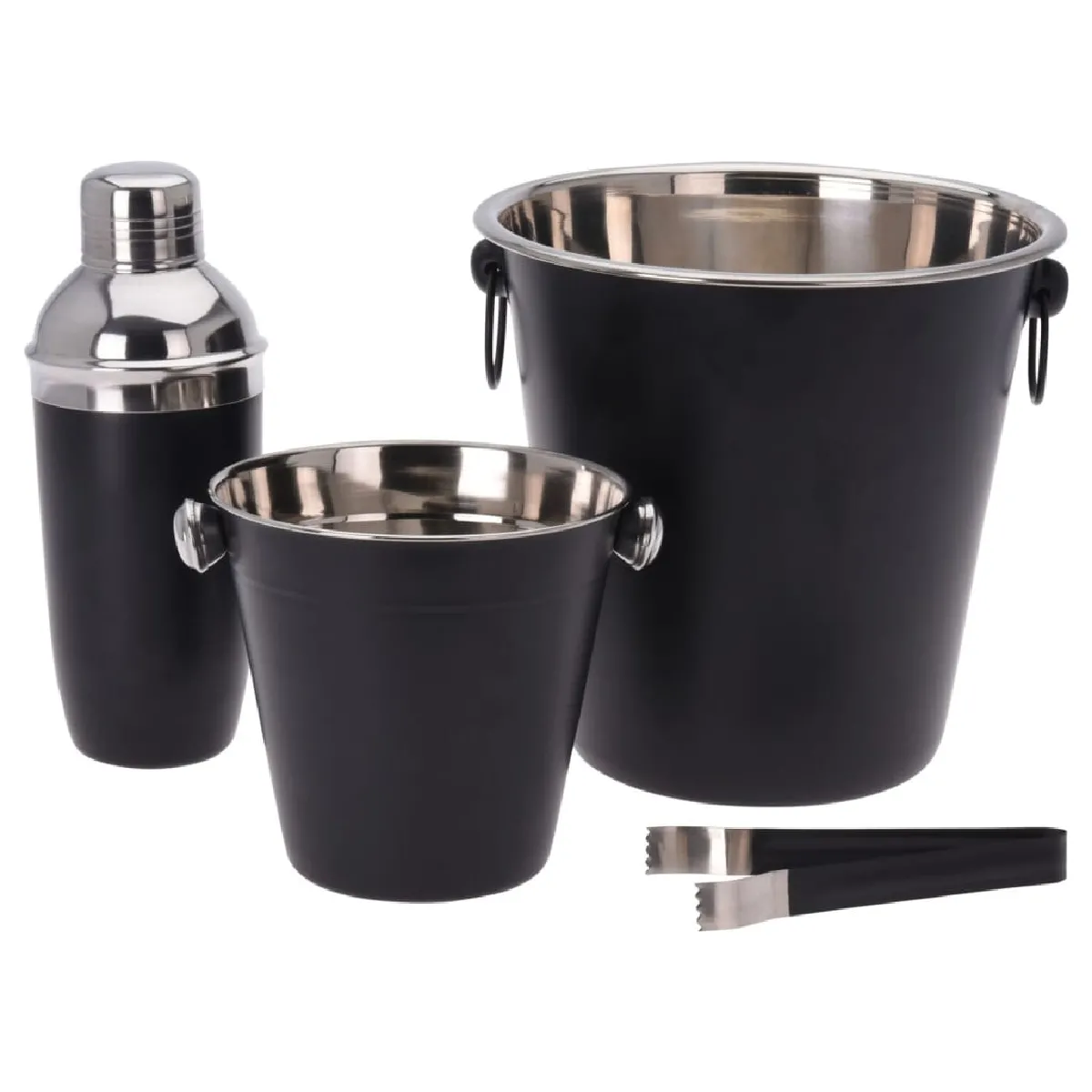 Ustensiles de bar - Acier inoxydable noir - Shaker 500 ml - Seau à glace - Pince 12 cm