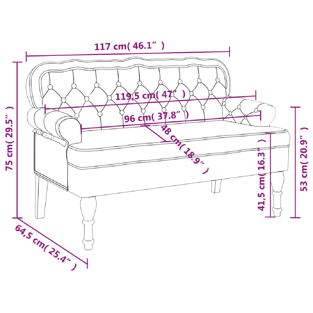 - Design élégant : le banc est doté d'un dossier en forme ondulée, de touffes de boutons, d'accoudoirs roulés et de pieds de style antique, qui ajoutent une touche d'élégance à votre décoration intérieure.