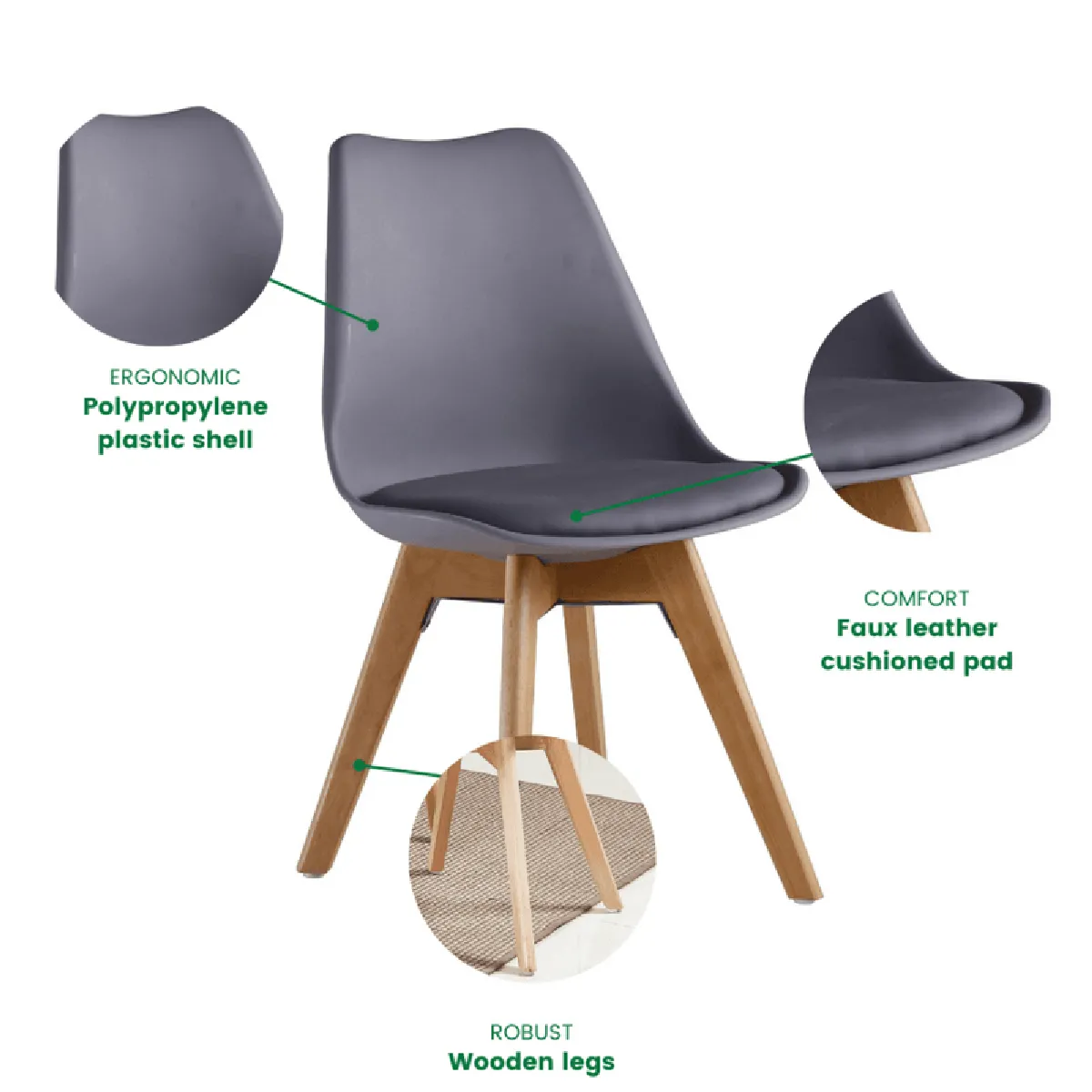 p Décorez votre maison avec des chaises de salle à manger élégantes et fonctionnelles. Cette chaise de salle à manger est la véritable incarnation de la vie scandinave. Dispose d'une coque incurvée en polypropylène robuste moulée de manière ergonomique pour fournir un soutien à votre dos ou à votre colonne vertébrale, Siège rembourré en similicuir pour une expérience d'assise confortable. Soutenu par des pieds en bois massif, complété par un bord en cascade lisse et des repose-pieds pour protéger vos sols des rayures. La fabrication supérieure offre une durabilité qui résistera à l'épreuve du temps./p