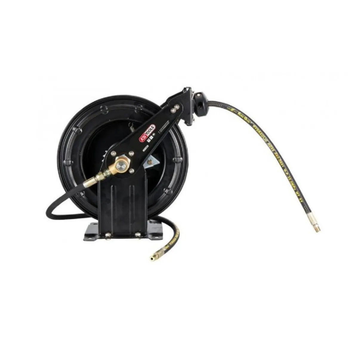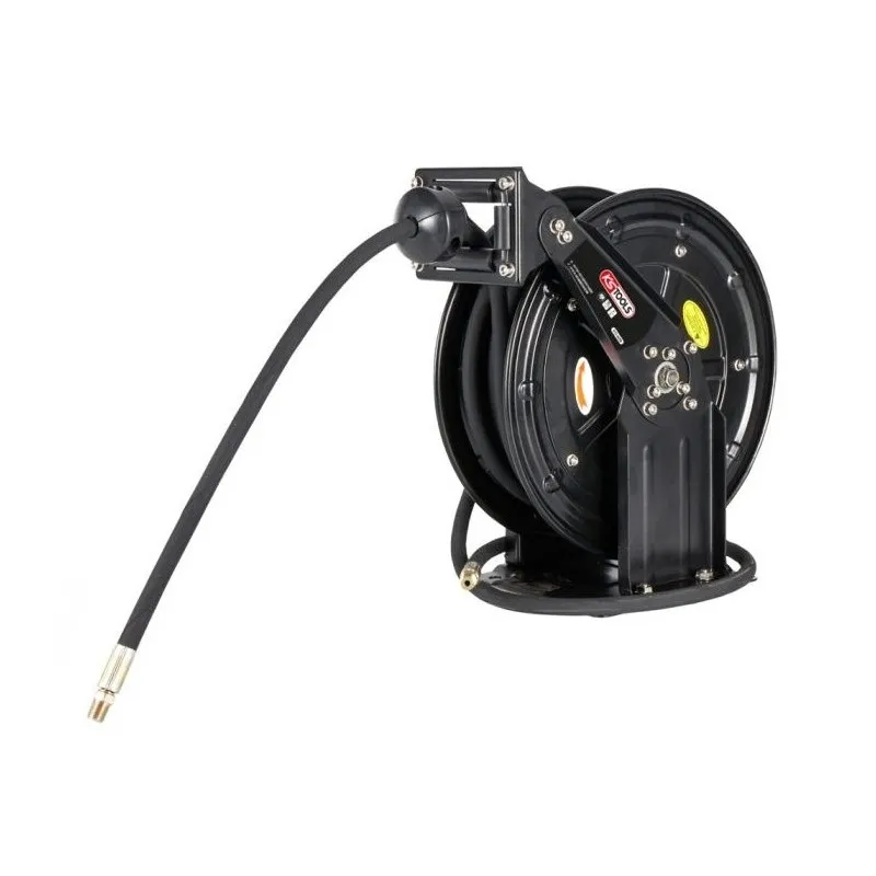Le tuyau de 9 m offre un rayon d'action confortable, tandis que la section de 1/4" 6,35 mm assure un débit maîtrisé pour les applications de maintenance. Le mécanisme interne contribue à une utilisation régulière, avec un guidage qui protège le tuyau des torsions. L'ensemble robuste de 15000 g favorise une stabilité efficace lors des cycles d'enroulement et de blocage, réduisant les risques d'à-coups. La configuration sans câble se concentre sur la distribution d'huile, limitant les accessoires superflus et simplifiant l'installation.