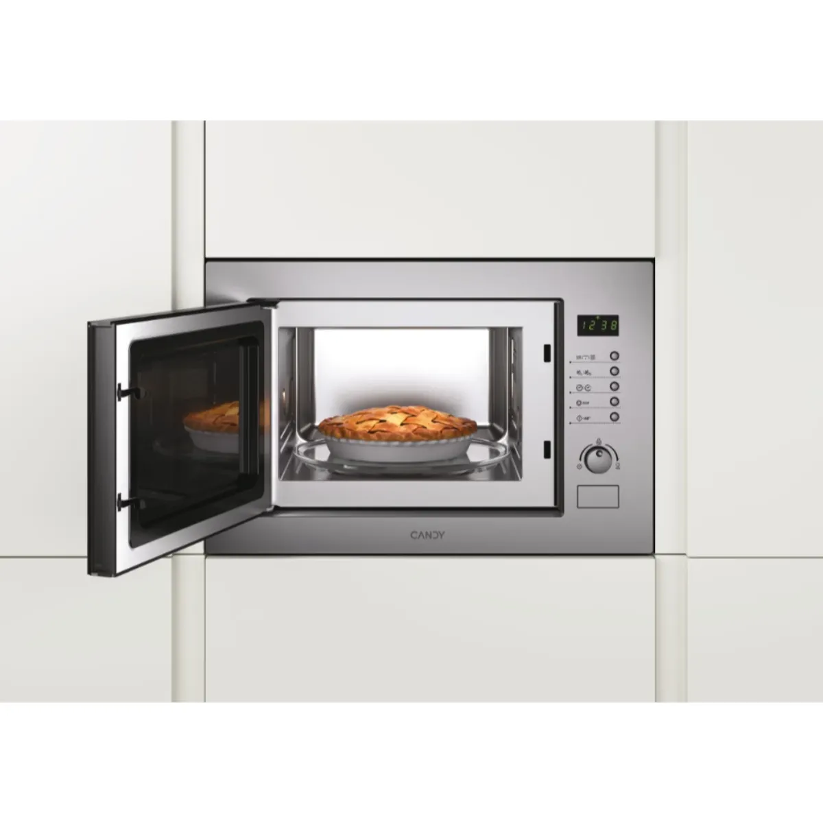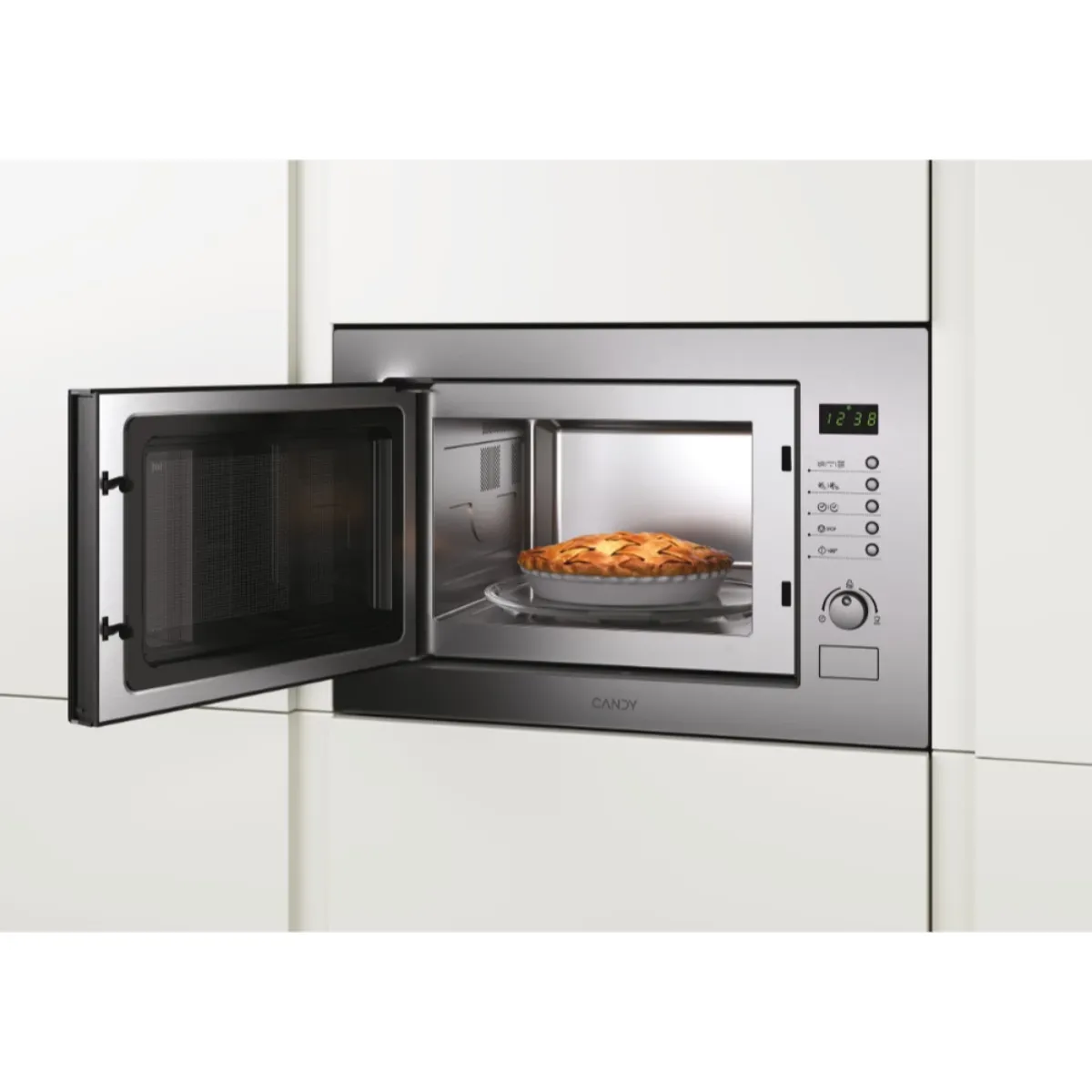 Micro-ondes encastrable multifonction avec gril - 900 W micro-ondes - 1000 W gril - 8 niveaux de puissance - Commandes électroniques - Plateau tournant 31,5 cm - Décongélation automatique - Porte latérale - Cavité inox