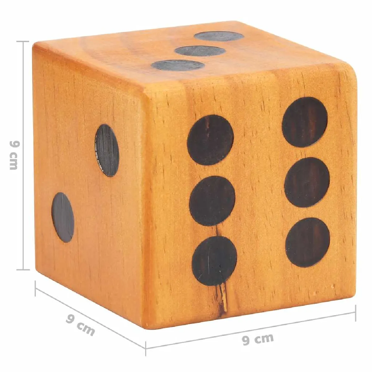 - Dimensions de chaque dé : 9 x 9 x 9 cm (l x P x H)