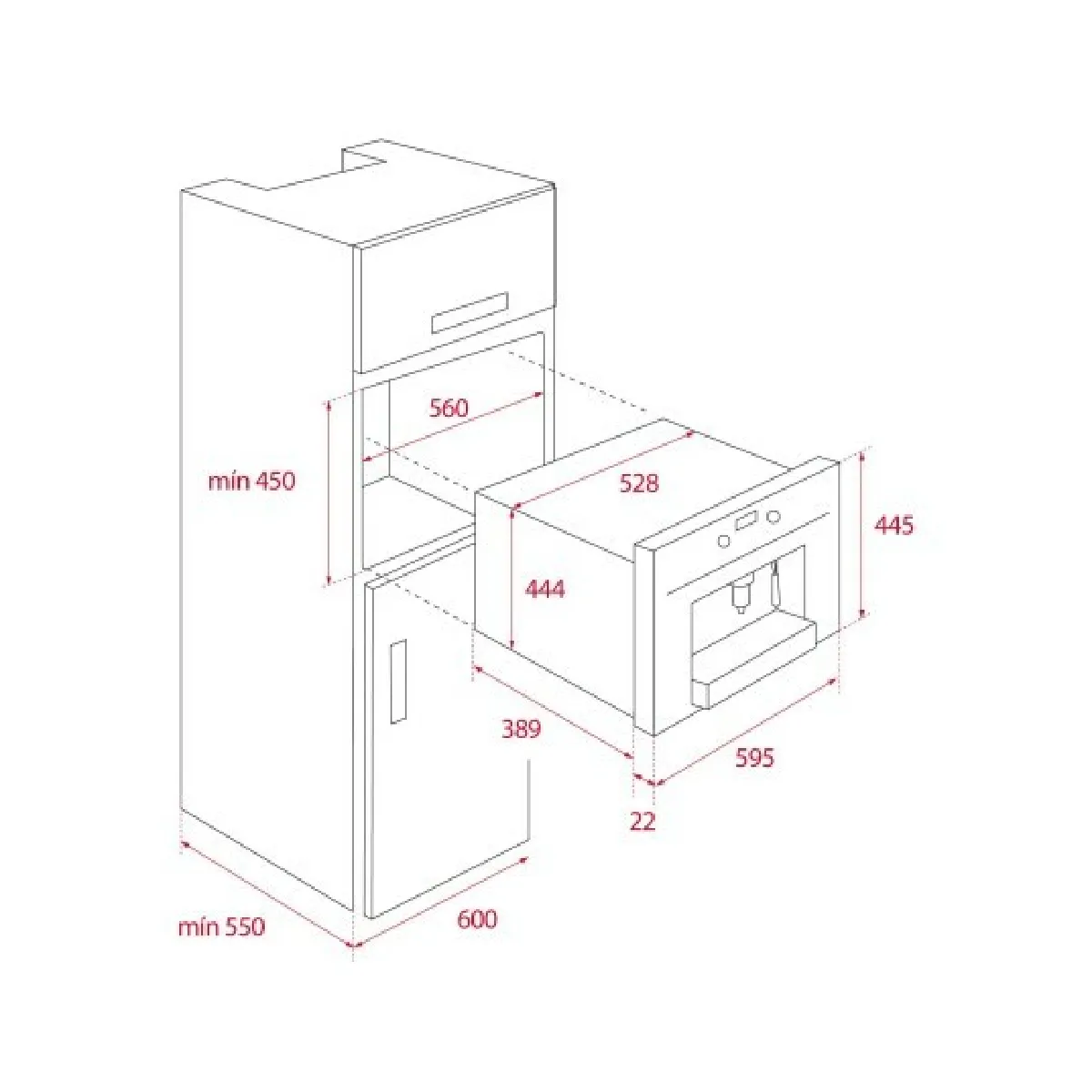 Machine expresso encastrable - Broyeur intégré - Pompe 15 bars - Écran d’affichage - Réglages température et intensité - Nettoyage et détartrage automatiques - LED