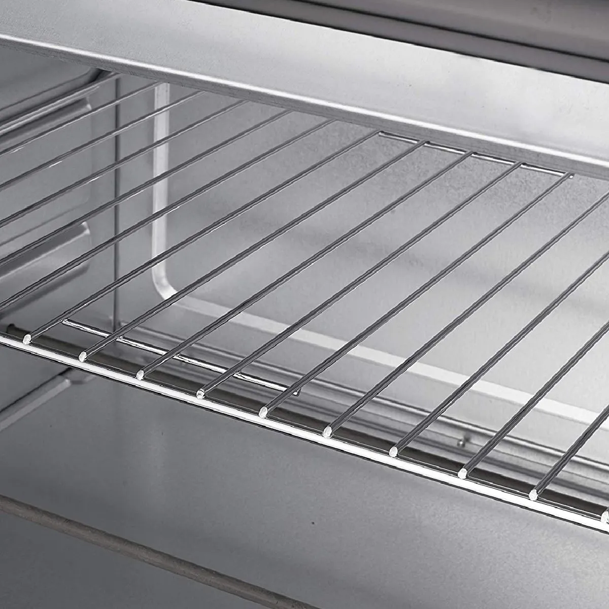 Four de table à convection en acier inoxydable ; comprend une brochette rotative pour rôtir les poulets et 2 plateaux pour préparer des pizzas, des pommes de terre au four, des toasts ou des pâtisseries incroyables.Grâce à son système de circulation d'air, qui entoure les aliments et permet d'obtenir des résultats tendres et savoureux, vous pouvez cuisiner sans huile, avec moins de graisses saturées ; vous obtenez des repas plus sains que la friture ou le sauté.Porte en verre très résistante qui aide à maintenir la température ; minuterie jusqu'à 60 minutes ; température réglable jusqu'à 230ºc ; témoin lumineux de fonctionnement et base antidérapante.Le bouton de fonction vous permet de choisir si vous voulez qu'il chauffe uniquement par le haut ou par le bas, ou les deux en même temps.Comprend une plaque de cuisson, un grill, une poignée avec clip pour retirer les accessoires et une brochette de poulet tournante. Son extérieur laqué le rend facile à nettoyer.