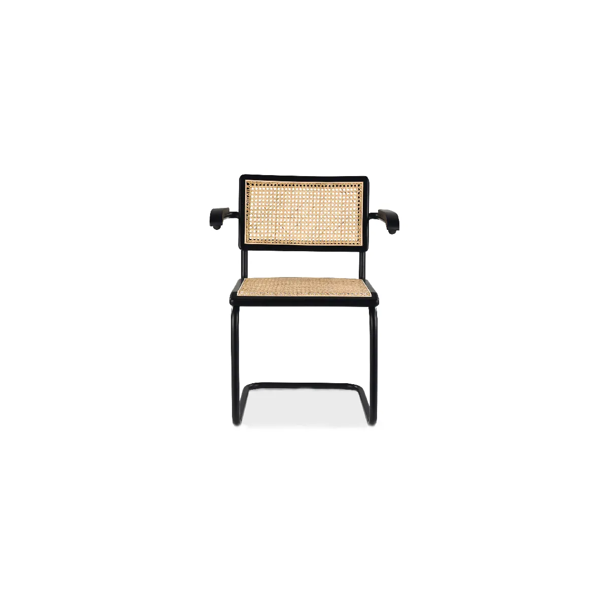 .Cette chaise de salle à manger en cannage vintage est une valeur sûre pour offrir une petite touche rétro unique à la décoration de votre salle à manger, votre cuisine ou votre restaurant. Confortable et pratique grâce à son assise et ses accoudoirs en bois et rotin naturel, cette chaise de salle à manger cantilever n'en est pas moins solide grâce à ses robustes pieds en métal noir. Dimensions : 53 cm x 59 cm x 81 cm (L x l x H)