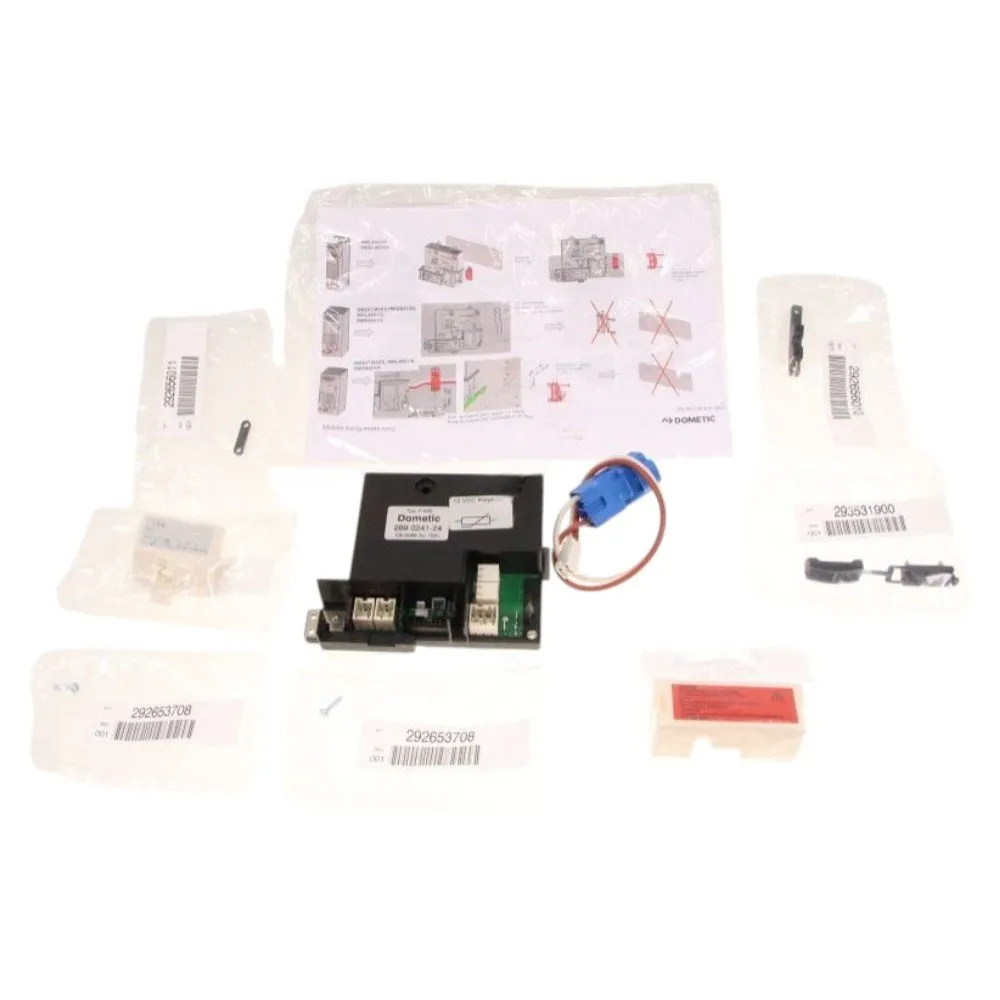 Commentaire vendeur : Merci de vérifier que cet article est bien compatible avec votre modèle d'appareil. Notre service client peut vous conseiller. Ce kit contient les pièces suivantes : 1 pcs 241209333 couvercle connection câble d'alimentation1 pcs 241209335 couvercle connection batterie1 pcs 289024124 connection brique complet1 pcs 289069521 connection cablage MTA-plug2 pcs 292653708 vis voyant C3,9x161 pcs 292656010 clip anti-tension1 pcs 292656011 clip anti-tension1 pcs 293531900 couvercle1 pcs 295267595 mode d'emploiCompte tenu de la spécificité de ce produit (Matériel Electronique, Electrique) il ne pourra en aucun cas être remboursé ou échangé s'il a été ouvert ou montée !La garantie se limite à un échange standard par le même produit exactement. Si l'exemplaire livré présente un défaut et après expertise de nos services.La partie conseil est dispensée par les techniciens à titre commercial, sans aucun engagement de notre part. De même, les informations sur le niveau de difficulté indiquées sur chaque fiche produit sont données à titre indicative. La responsabilité de SEMBOUTIQUE ne peut être engagée concernant ces informations et les conseils techniques..Pièce compatible avec les marques : DOMETIC.Compatible avec les modèles suivants : DOMETIC: RMD8505 - 921084866, RMD8505 - 921078779, RMD8505 - 921078597, RMD8505 - 921078861, RMDT8505 - 921712635, RMD8505 - 921132302, RMD8505 - 921078860, RMD8505 - 921132771, RMD8505 - 921084875, RMDT8...