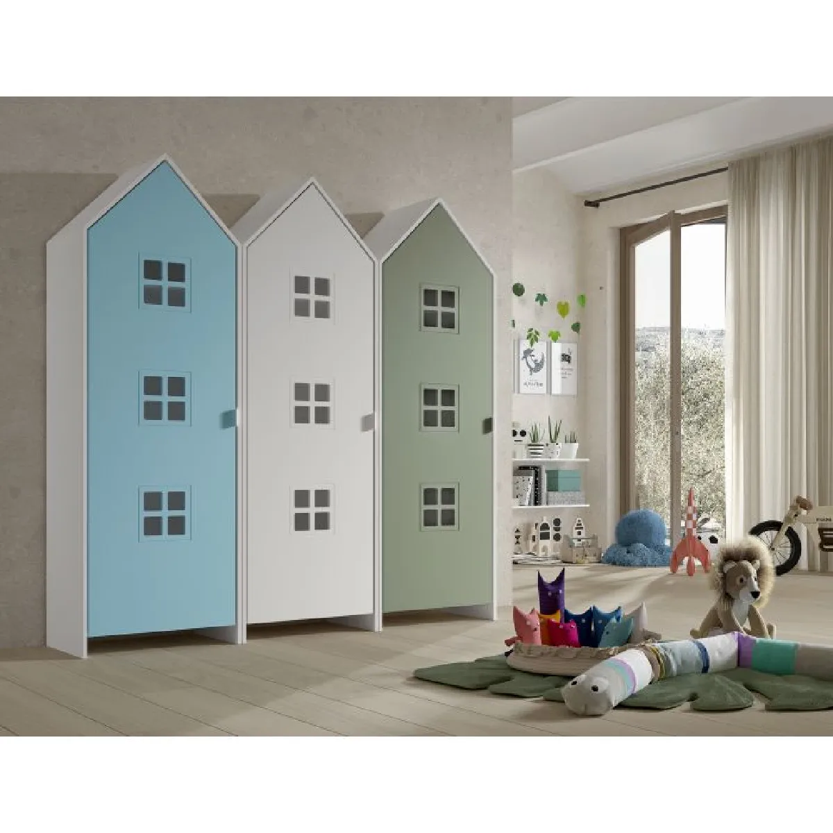 La forme de cabane de plage apporte une dimension décorative tout en restant fonctionnelle. Avec 2 portes, l'armoire facilite le tri selon les usages : vêtements d'un côté, jeux et petits objets de l'autre, pour une organisation claire au quotidien. La finition blanche s'accorde avec des teintes pastel ou des couleurs plus vives, offrant une base neutre pour personnaliser la pièce. Le style bohème reste discret, ce qui permet d'harmoniser l'armoire avec d'autres meubles sans surcharger l'espace.