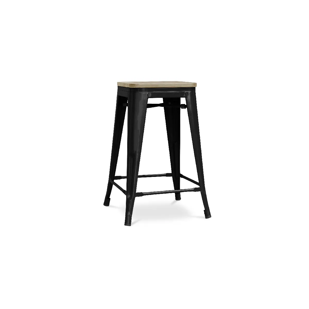 Tabouret de bar design - style industriel - assise bois - structure acier