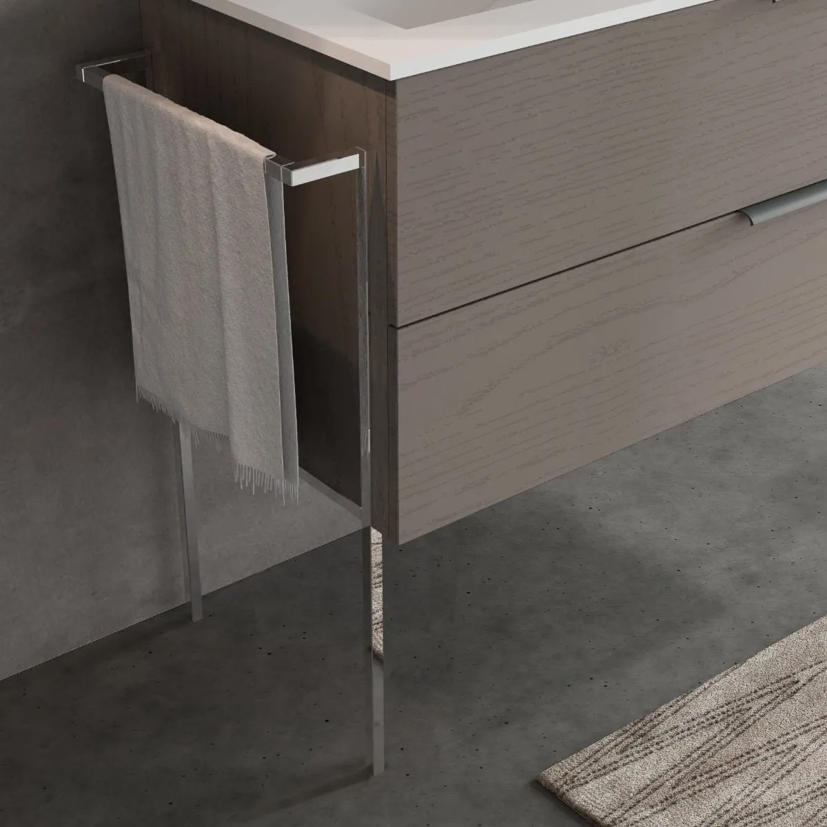 - Poignées en métal anthracite et porte-serviettes latéral en métal chromé