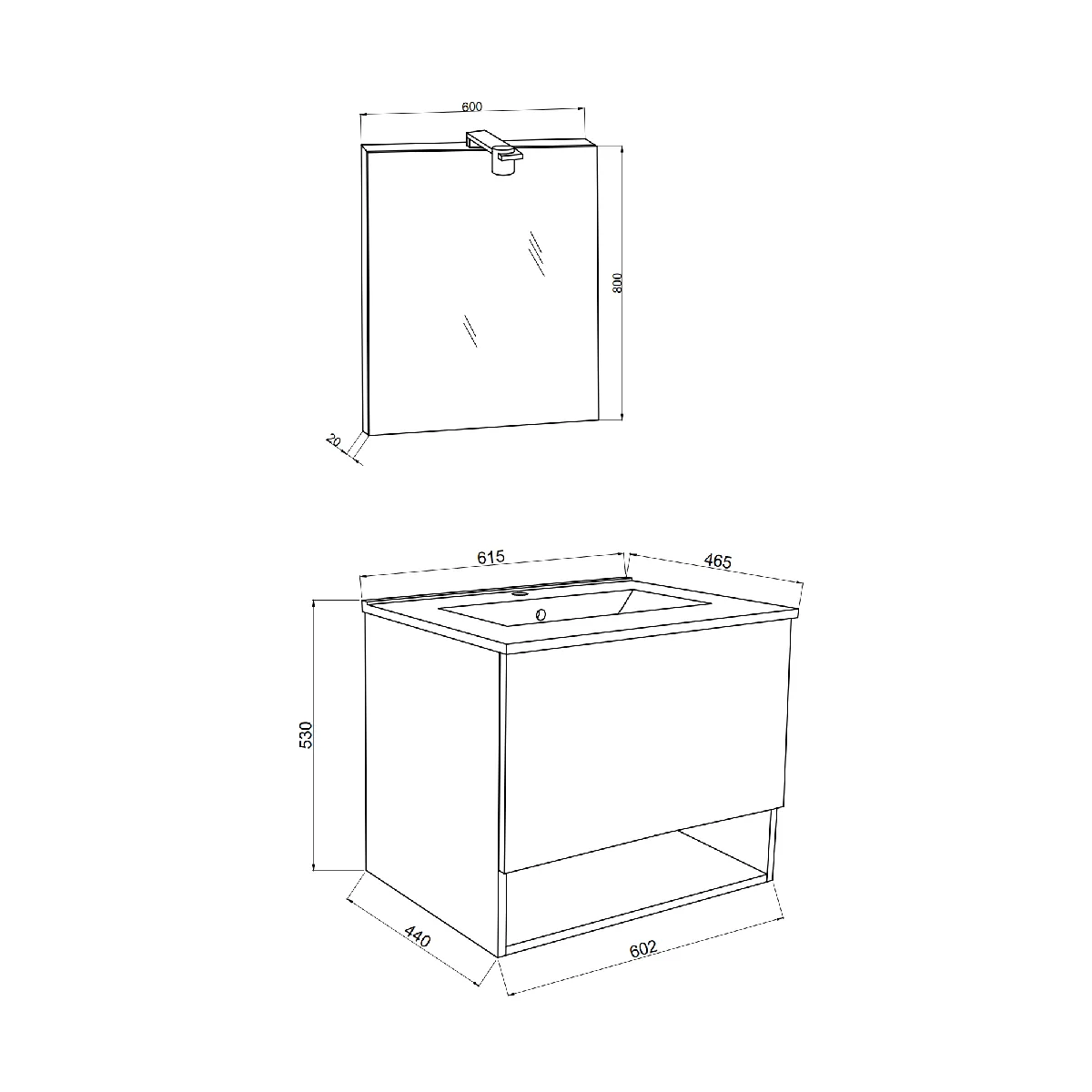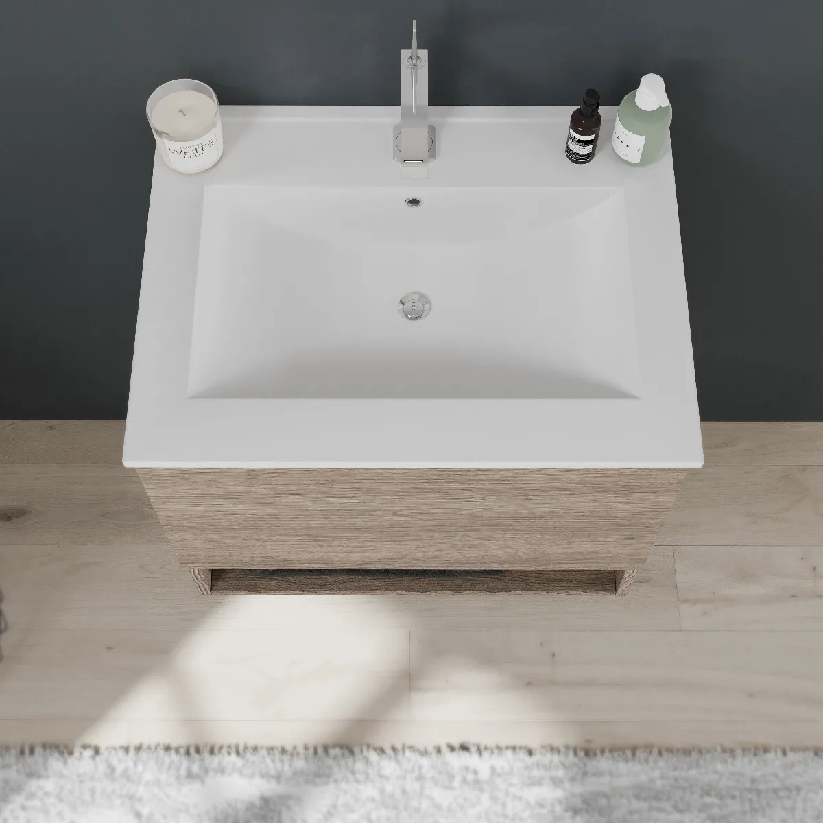 Pensé pour optimiser l'espace, cet ensemble compact de 60 cm réunit un meuble suspendu, un lavabo en céramique et un miroir avec bords polis fixé sur un cadre en bois revêtu en ABS. La teinte chêne offre un aspect bois chaleureux adapté aux petites salles de bains. Le tiroir sous-lavabo accueille les essentiels du quotidien, tandis que le compartiment ouvert inférieur garde les serviettes à portée de main. Le lavabo est pré-percé pour robinet et équipé d'un trop-plein, et le bord élargi sert de surface de pose. L'éclairage intégré complète l'ensemble pour un usage confortable au quotidien.