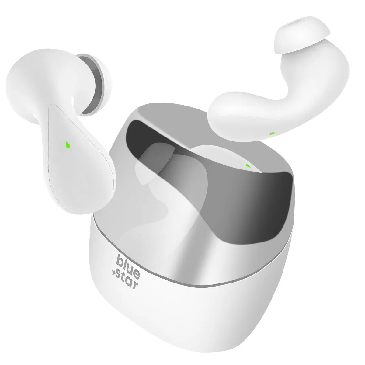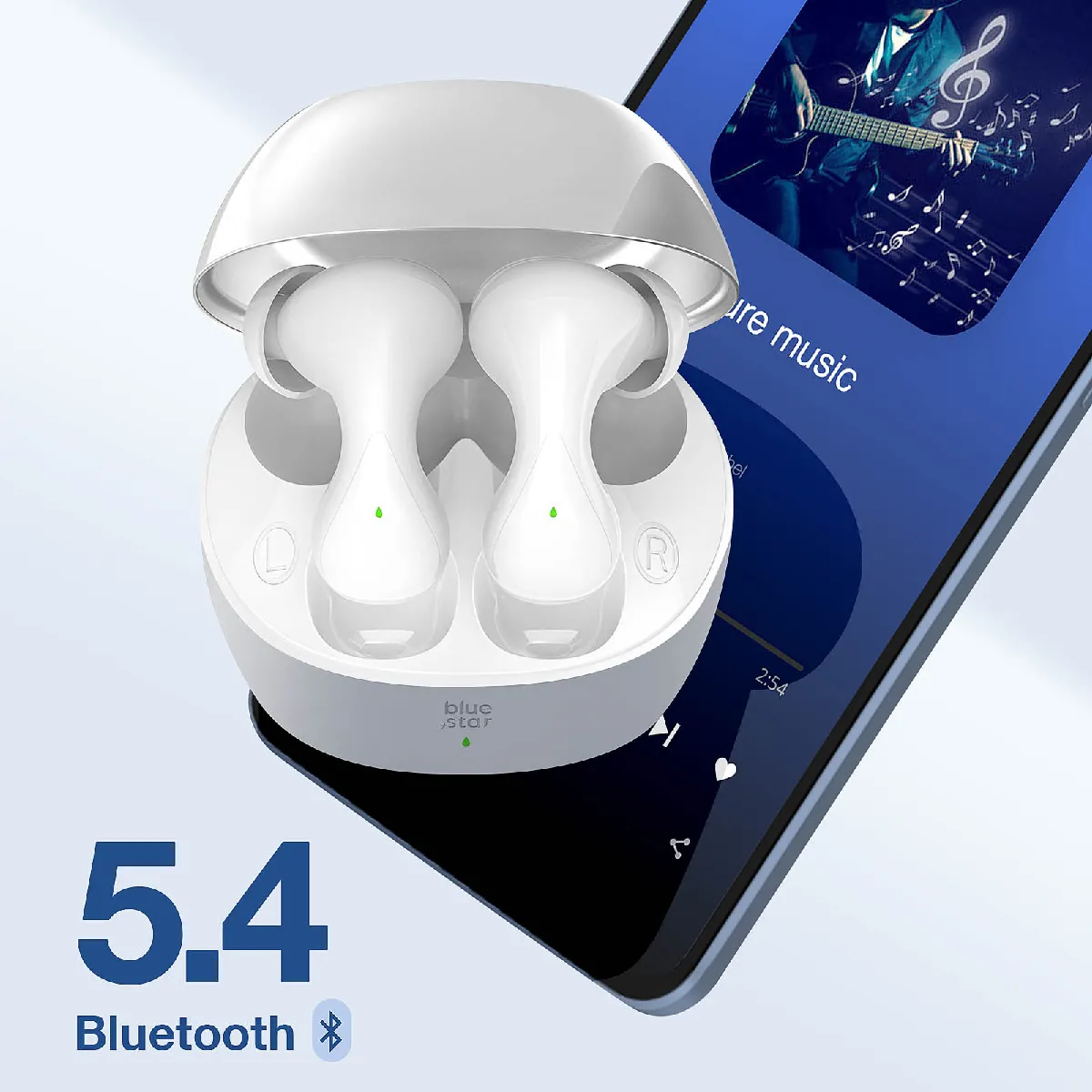 Écouteurs Bluetooth 5.4 Blue Star blanc, ultra-stables garantissant une diffusion audio fluide et sans interruption avec une portée allant jusqu'à 12