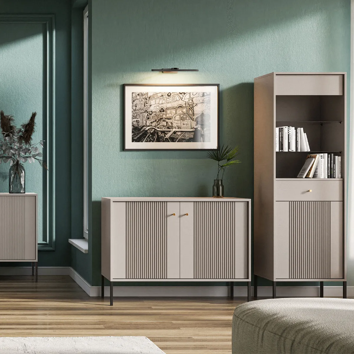 La commode Iseo 2D en cachemire est un meuble moderne au design élégant qui s'adaptera à de nombreux intérieurs. Son design simple mais sophistiqué se caractérise par des lignes droites et des détails subtils tels que les rainures verticales sur les façades.