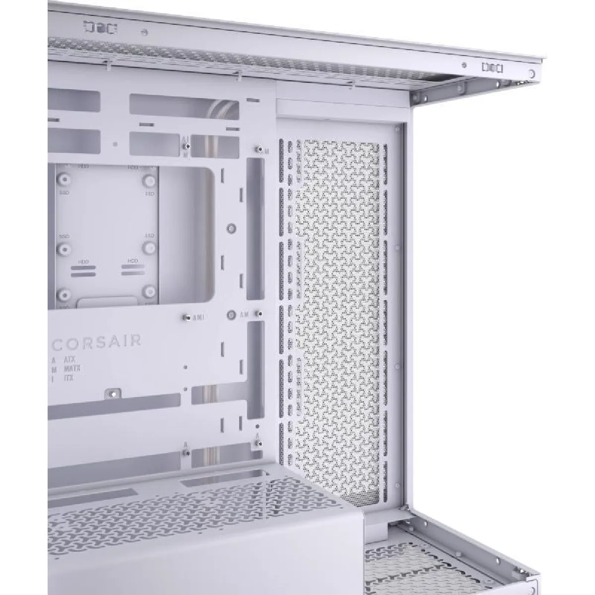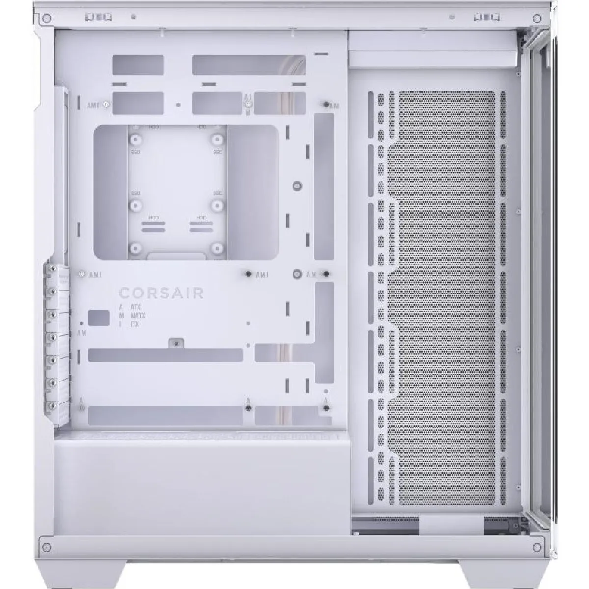 Le boîtier présente une couleur blanche soignée associée à des panneaux en verre trempé qui offrent une visibilité optimale sur l'intérieur et une esthétique haut de gamme adaptée aux configurations gaming et de création.