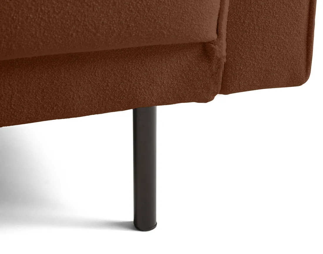 Fauteuil en tissu terracotta avec pieds hauts en métal