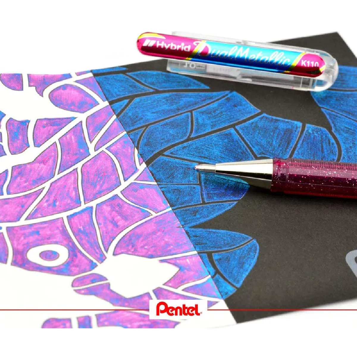 Pentel K110 Dual Métallique Hybrid Dual Métallique Rouleau de Gel, Paillettes Gel, 1 Pièce, 2 Divers Farb-Effekte sur Brillant / Sombre Papier - Blac / Met.rot, 0,5mm - Donner Vous Votre Modèle un, Um Lubrification, Qu Article S'Adapte - Effet Scintillant Reste sur le Papier - Effekt-Farbe Varie Oui au Betrachtungwinkel - Changement de Couleur de Brillant sur Dunkles Papier - Sans Acide , Épaisseur de Ligne 0,5mm Donner Vous Votre Modèle un, Um Lubrification, Qu Article S'Adapte