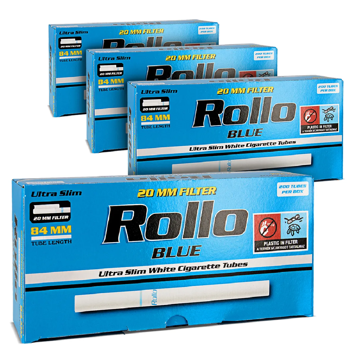 Ce pack de 4 boîtes de 200 tubes Rollo Blue Ultra Slim est parfait pour les amateurs de cigarettes faites maison. Chaque tube, ultra fin, mesure 84 mm de longueur et 6,5 mm de diamètre. Idéals pour une utilisation quotidienne, ces tubes de haute qualité garantissent une combustion uniforme et une manipulation facile. Leur conception précise facilite grandement le tubage, permettant d'insérer le tabac sans effort et d'obtenir une cigarette bien tubée à chaque fois.