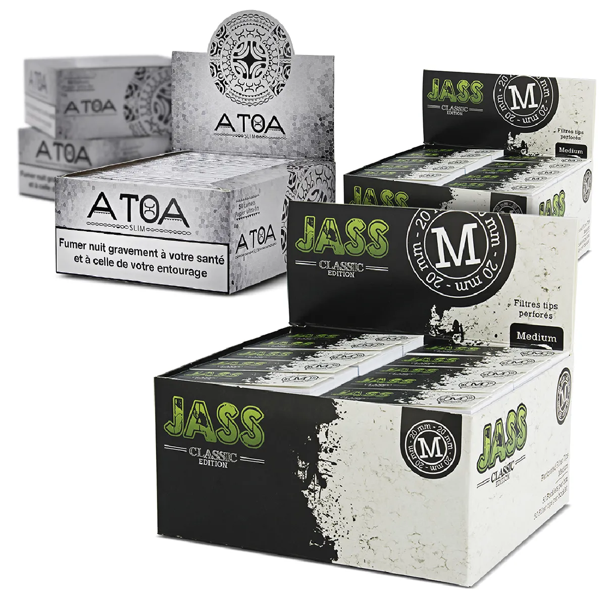 Feuilles Atoa Slim + Tips Jass - 150 carnets de feuilles - 100 carnets de filtres