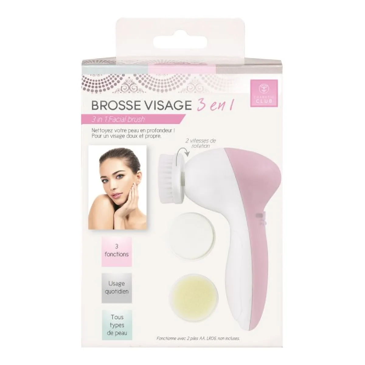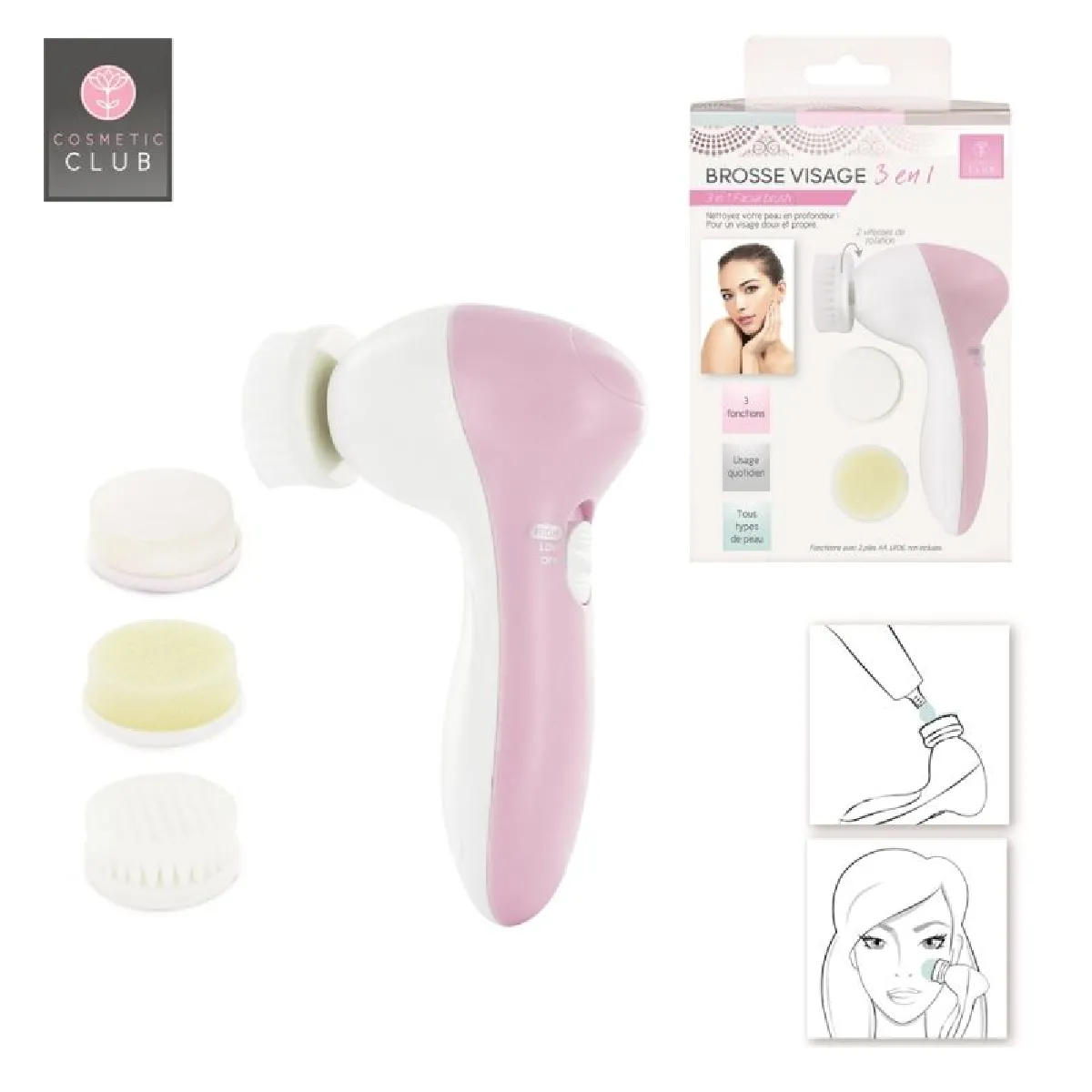 Brosse massante visage - Trois fonctions - Convient tous types de peau - Double rotation - Fonctionne sur piles AA